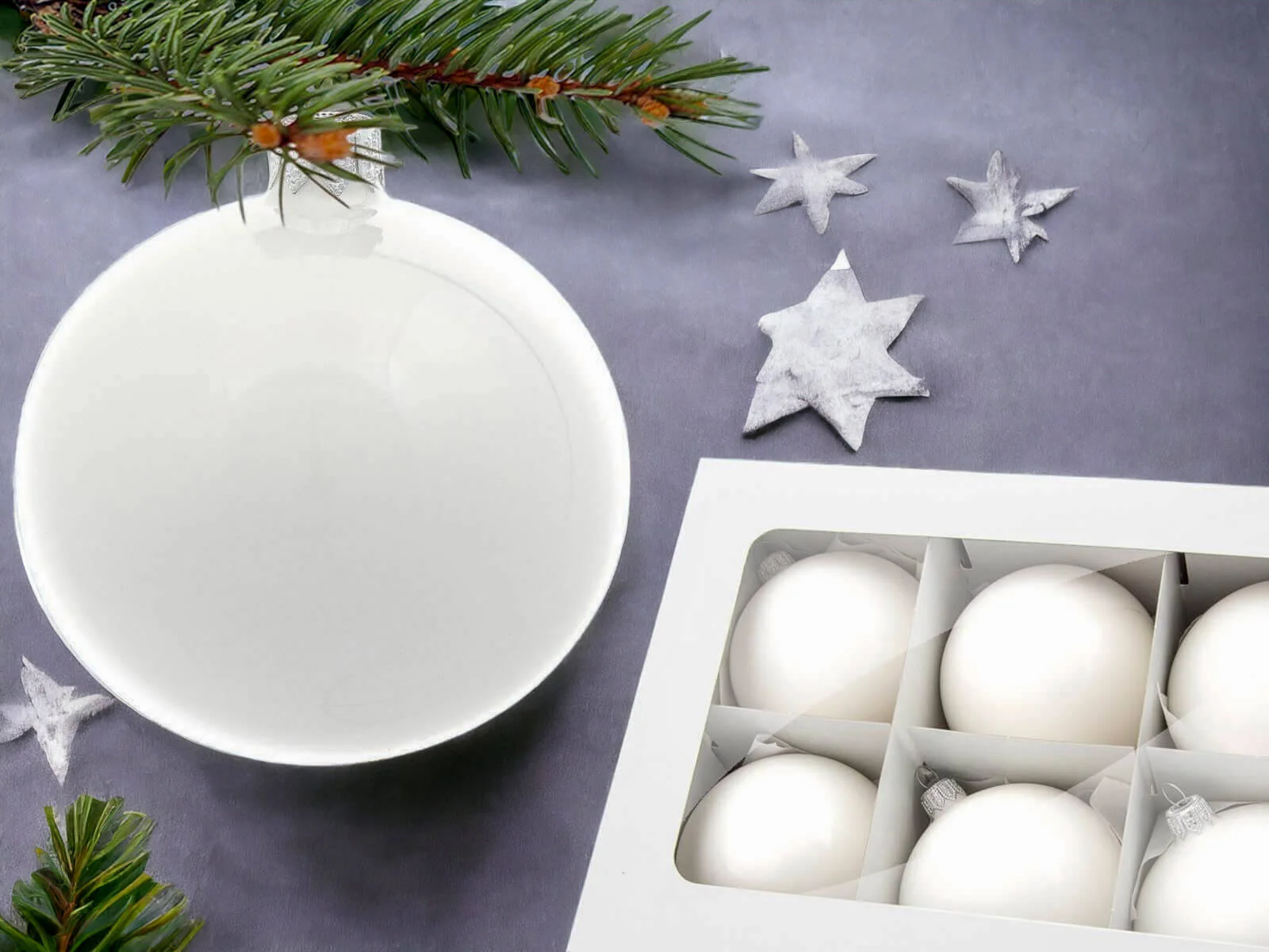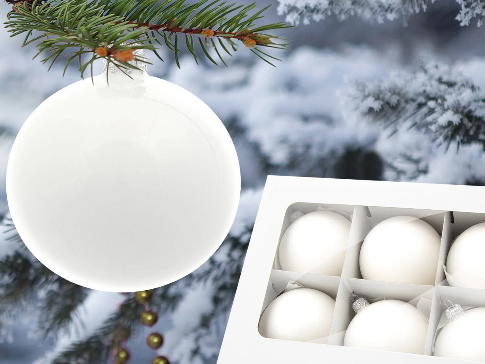 Zestaw pięknych, klasycznych bombek w kolorze białej porcelany. Jeśli cenisz sobie elegancję i lubisz styl skandynawski bombki cudownie będą prezentować się na twojej choince. Zestaw można podarować osobie bliskiej jako prezent.