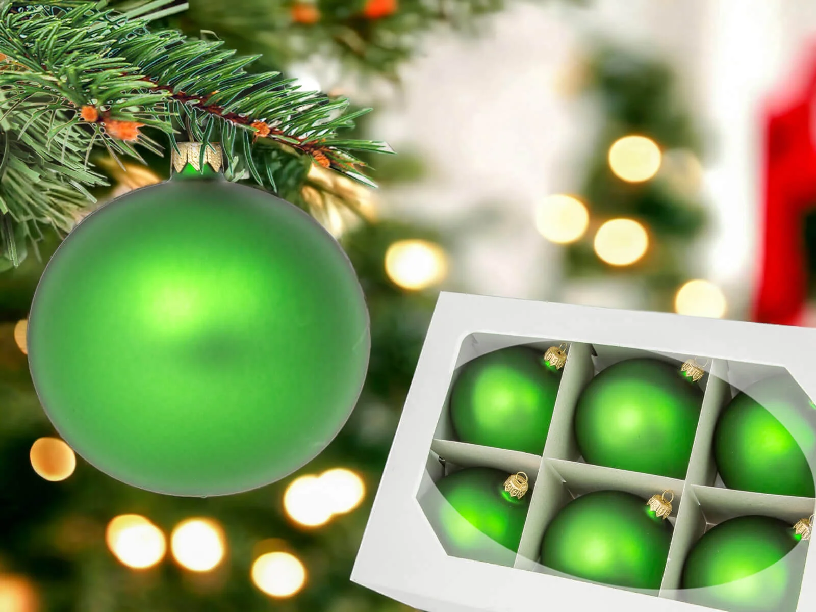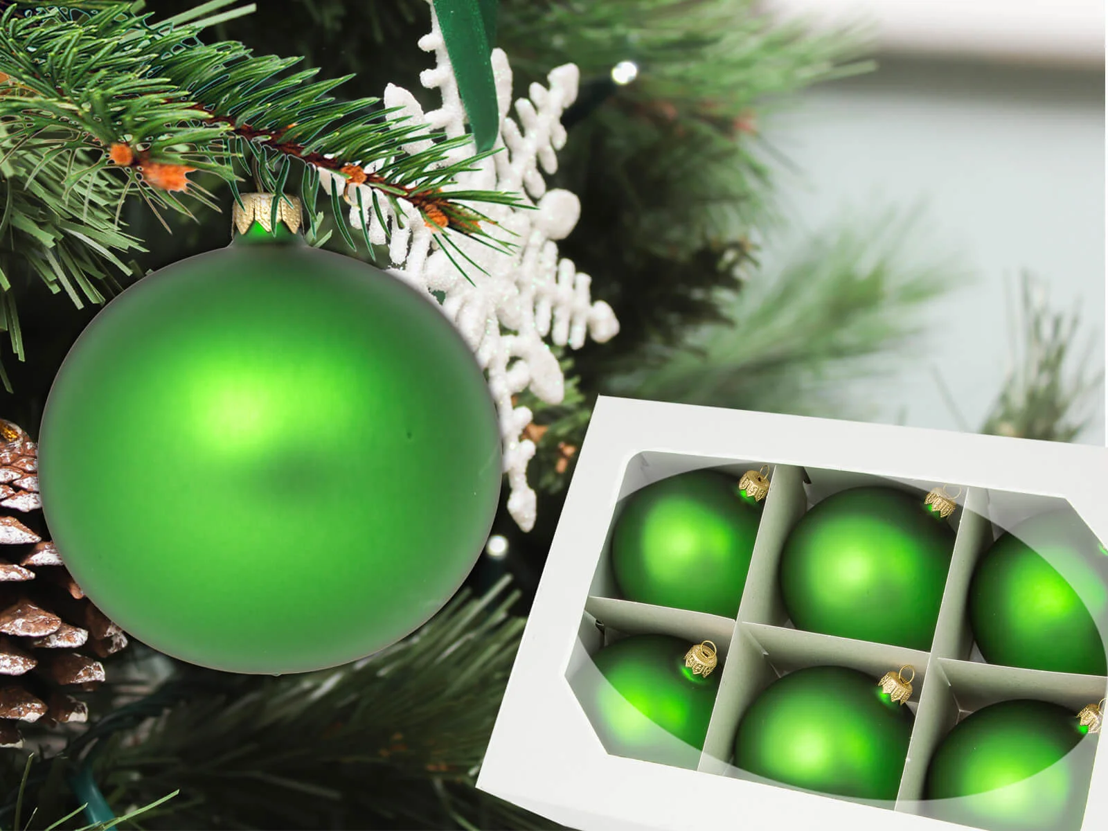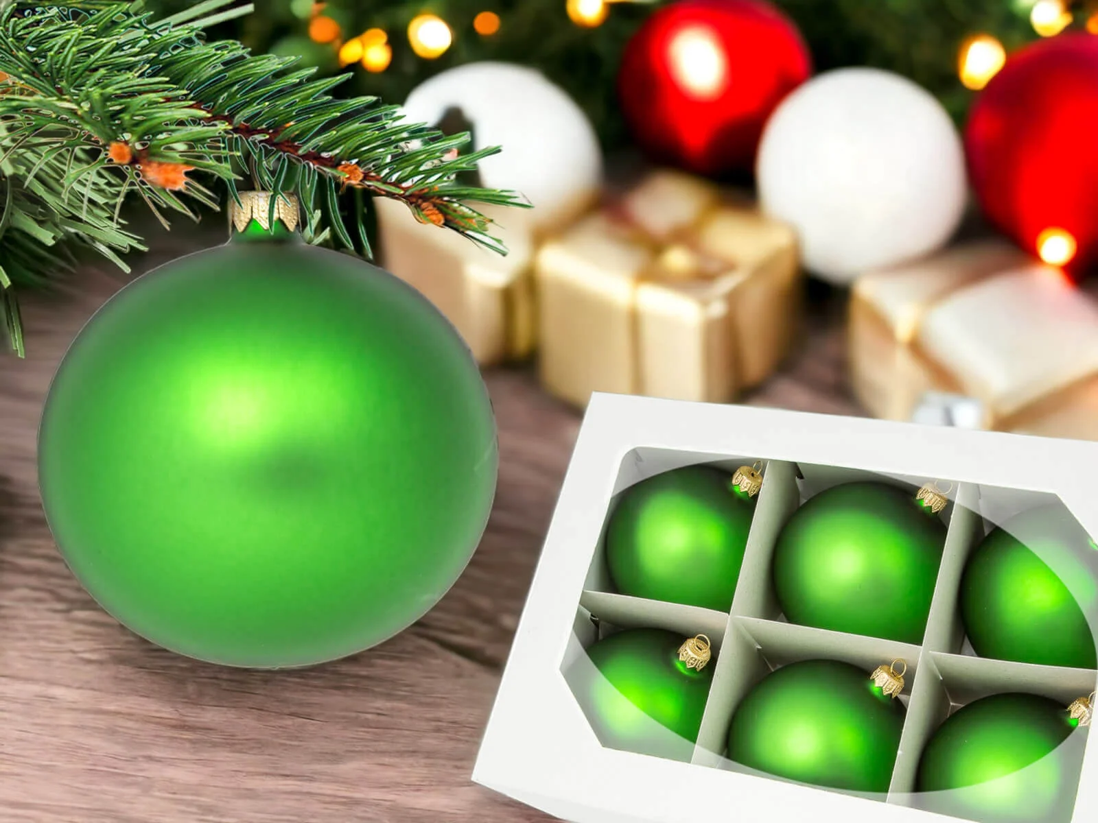 Zestaw składa się z 6 zielonych matowych bombek. Są one w jednolitym kolorze bez jakichkolwiek zdobień. Można zawiesić je na choince lub podarować bliskiej osobie, która ceni sobie elegancję i klasykę.