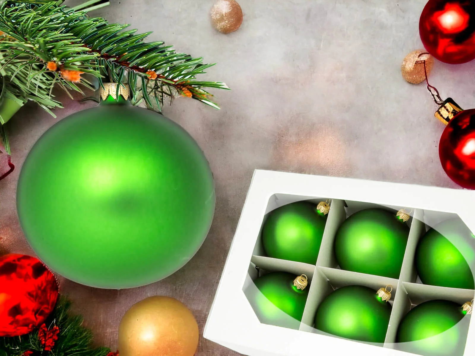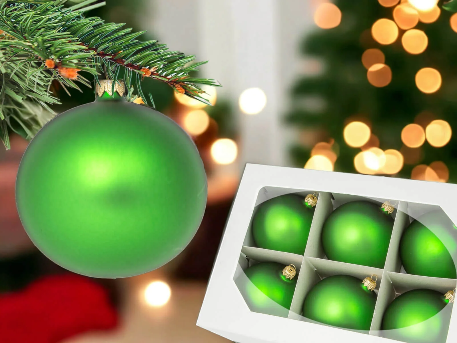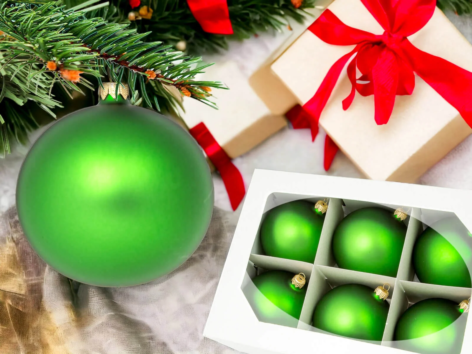 Zestaw składa się z 6 zielonych matowych bombek. Są one w jednolitym kolorze bez jakichkolwiek zdobień. Można zawiesić je na choince lub podarować bliskiej osobie, która ceni sobie elegancję i klasykę.