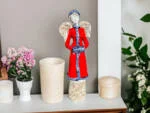 Jeśli anioł ma zostać wręczony jako prezent możemy go również elegancko zapakować w przeźroczysty celofan wiązany ekologicznym sznurkiem. Dzięki temu anioł będzie wyglądał jeszcze bardziej dostojnie i będzie gotowy do wręczenia. Dla wygody możesz również od razu zakupić papierową białą torbę prezentową.