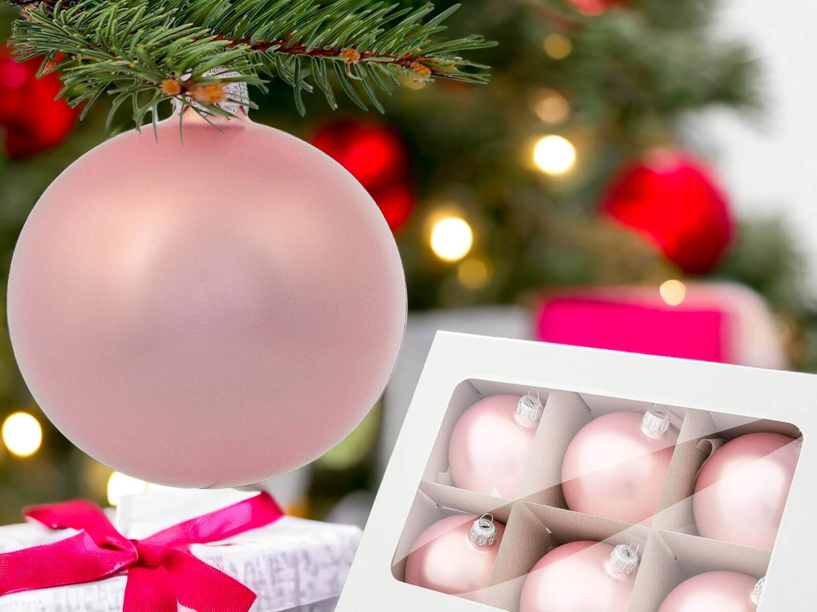 Zestaw składa się z 6 różowych bombek o matowej strukturze z lekkim połyskiem. Kolor różowy nada Twojej choince uroku i wdzięku. Nadają się dla osób, które lubią klasyczne, jednokolorowe dekoracje. Idealnie sprawdza się w nowoczesnym jak i klasycznym wnętrzu.