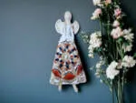 Anioł Heather to ręcznie wykonana figurka do zawieszenia na ścianę w kolorze białym, pomarańczowym i granatowym. Heather to śliczna anielica ceniąca sobie tradycję. Jest artystką uwielbia kulturę ludową swojej wioski. Jest ubrana w biało-beżową folklorystyczną suknie. Eksponuje piękne, długie warkocze. Ma delikatne, rozłożyste skrzydła. Figurka nadaje się na prezent na każdą okazję. Można ją zawiesić w każdym miejscu. Świetnie wkomponuje się w klasyczne jak i nowoczesne wnętrze.