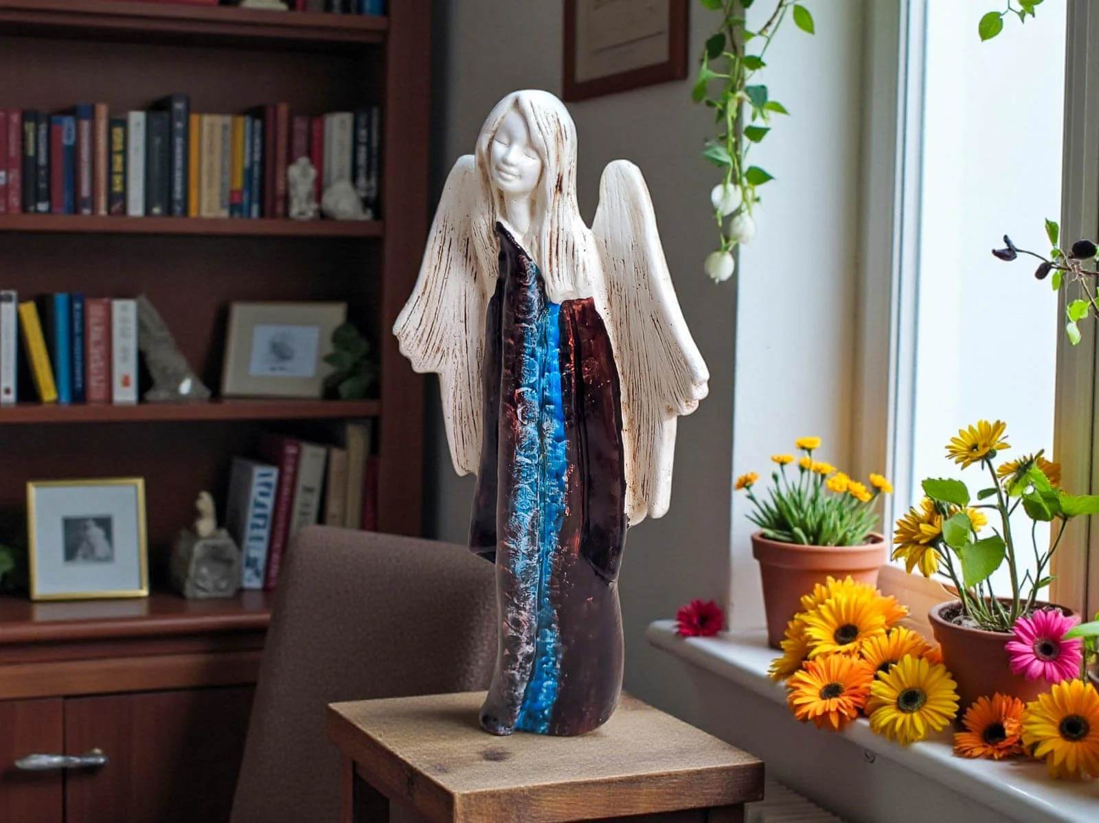 Jeśli anioł ma zostać wręczony jako prezent możemy go również elegancko zapakować w przeźroczysty celofan wiązany ekologicznym sznurkiem. Dzięki temu anioł będzie wyglądał jeszcze bardziej dostojnie i będzie gotowy do wręczenia. Dla wygody możesz również od razu zakupić papierową białą torbę prezentową.