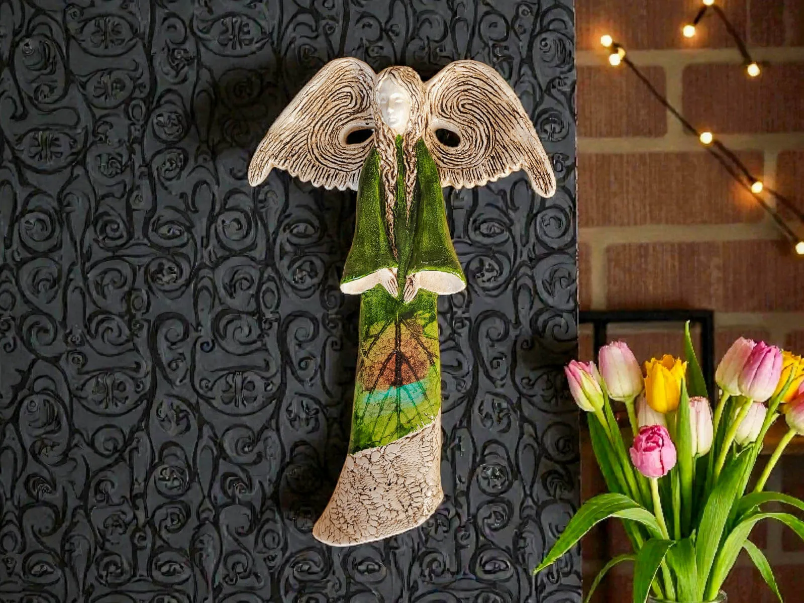 Jej zielona suknia zdobiona prawdziwymi liśćmi zachwyca naturalnością i elegancją, a rozłożyste, imponujące skrzydła nadają figurze lekkość i wznoszącą energię. Clara to doskonały akcent dekoracyjny do salonu, sypialni, korytarza czy gabinetu, wprowadzający do wnętrza spokój, harmonię i piękno natury.