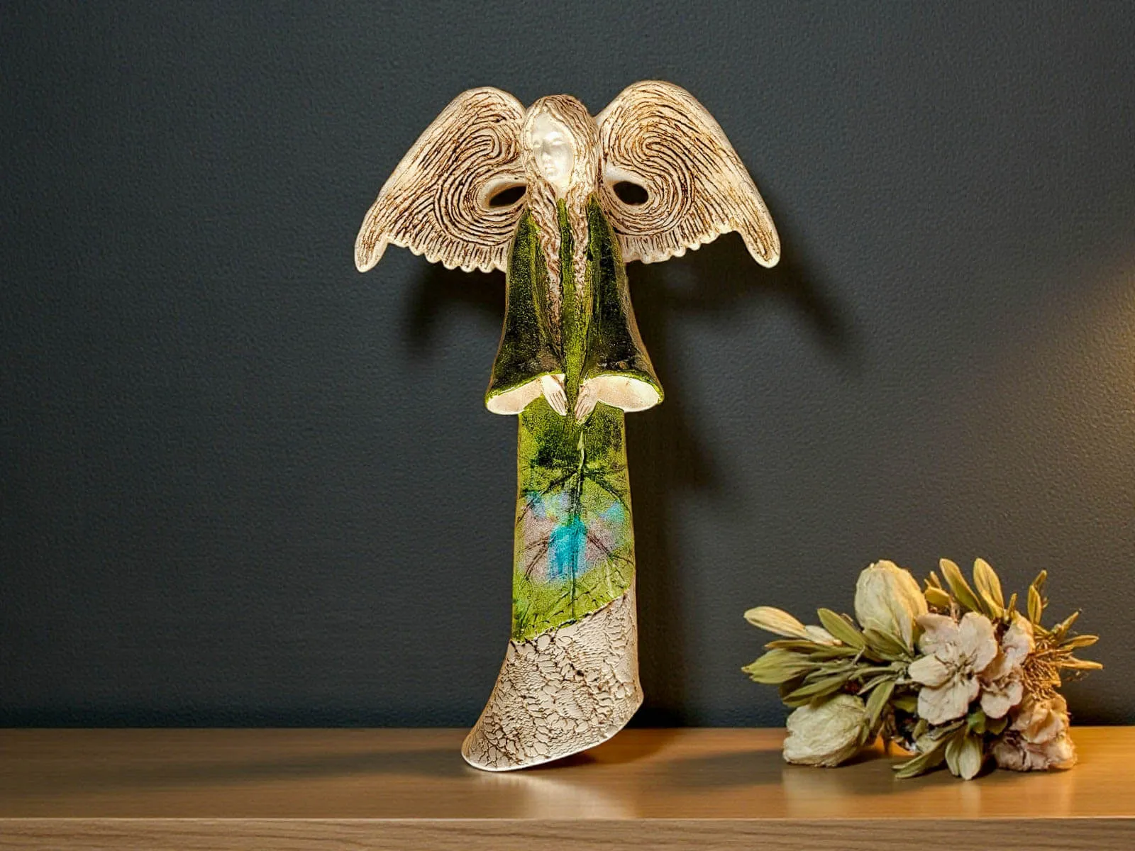 Anioł Clara Art Leaf - zielony - 40 x 28 cm figurka dekoracyjna gipsowa +