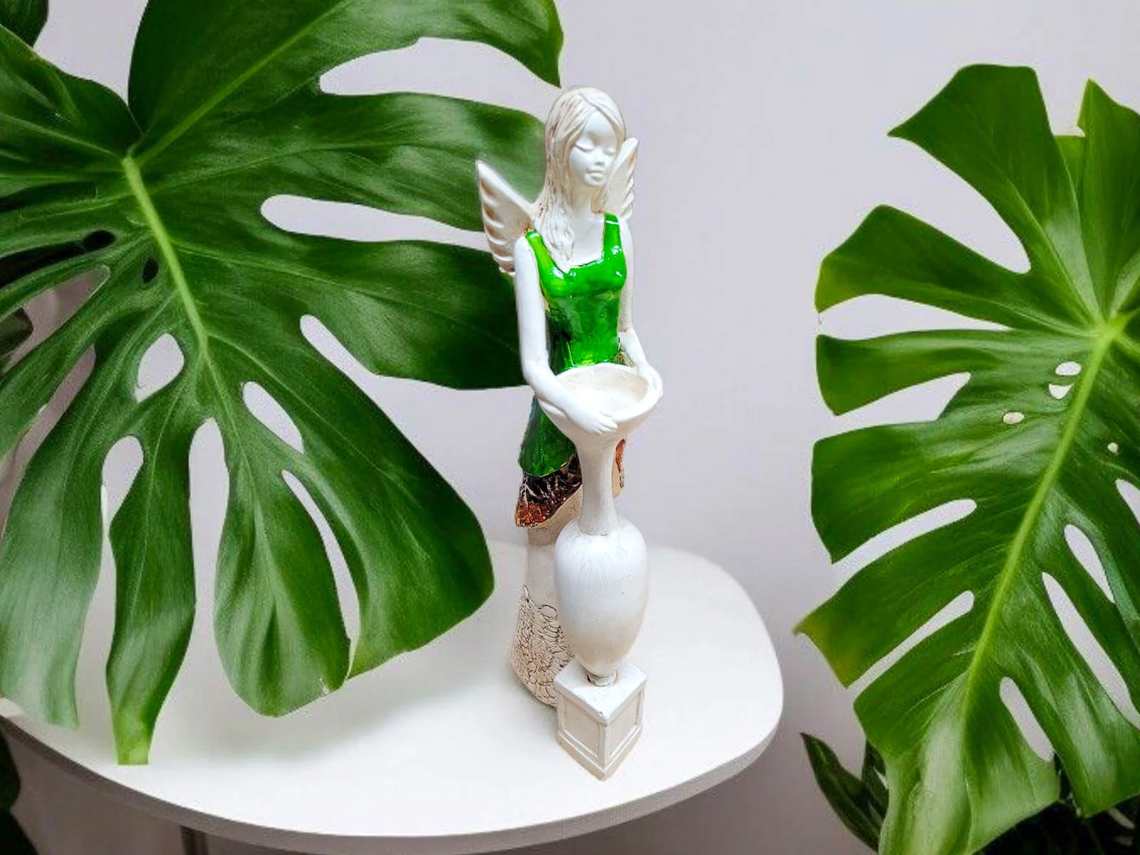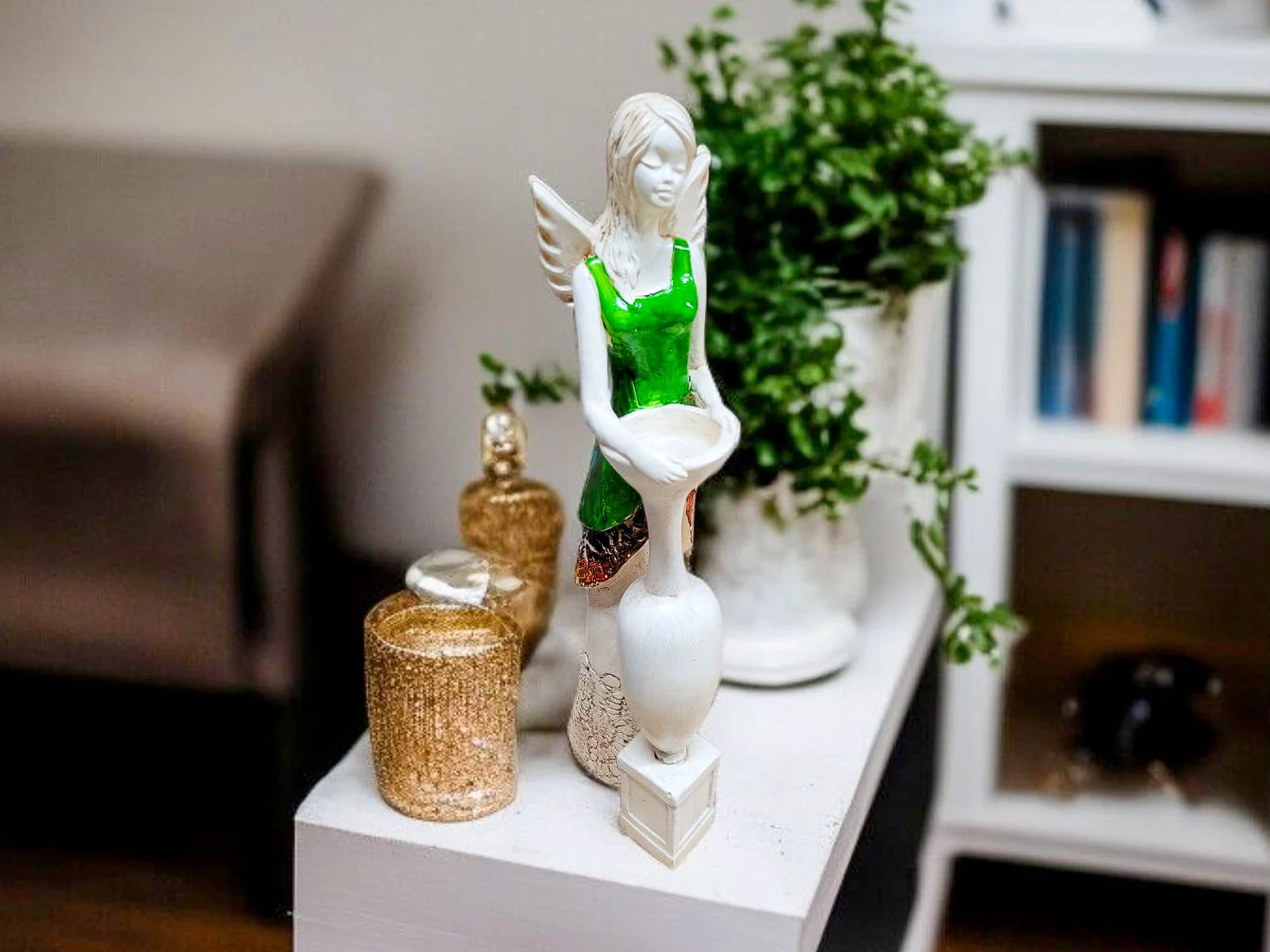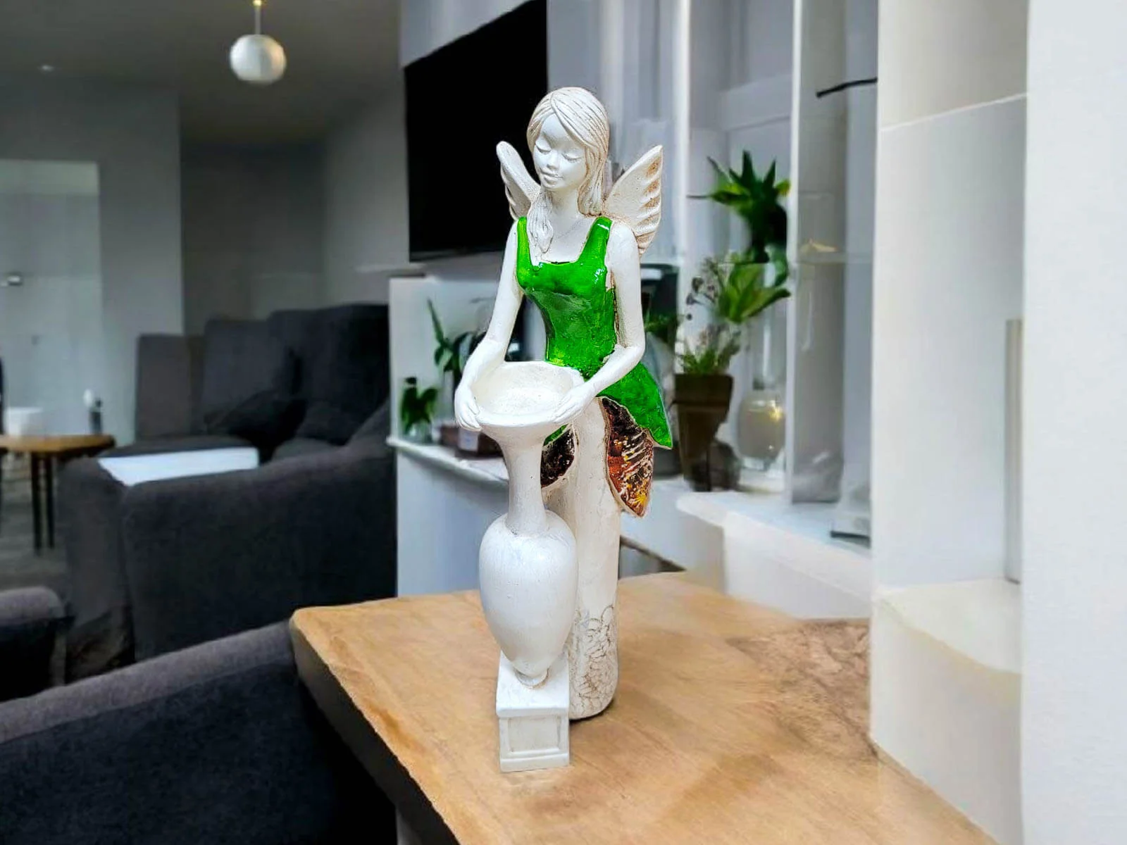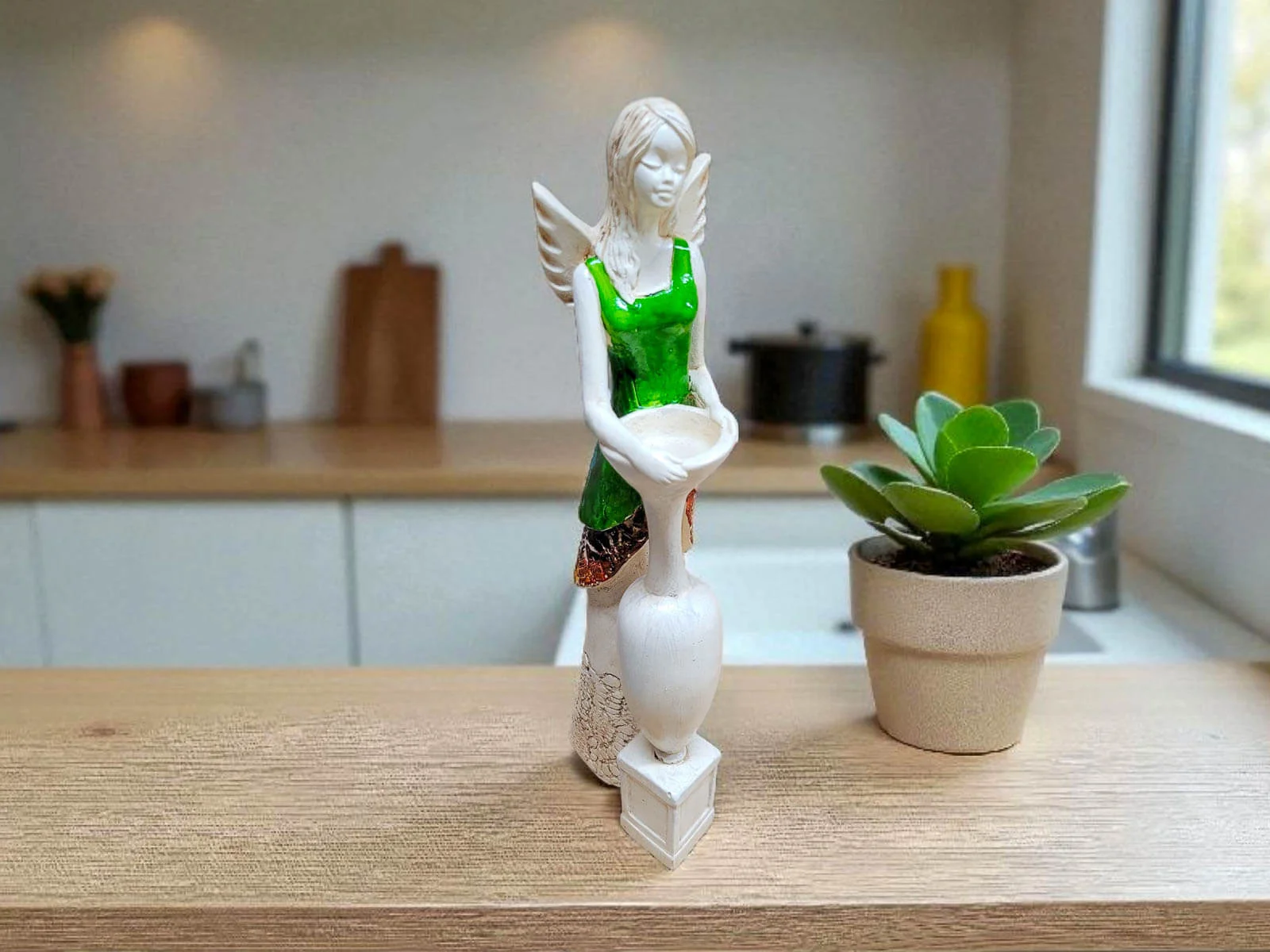 Suri jest garncarką, która swoimi zgrabnymi dłońmi tworzy naczynia. Daje jej to wiele radości, a przedmioty, które wyszły spod jej rąk są jedyne w swoim rodzaju. Jej zielona suknia podkreśla delikatność, a włosy opadające na ramiona dodają jej kobiecości. Figurka może pięknie ozdabiać salon, tworząc niezwykłą atmosferę będą lampionem z palącym tea lightem.