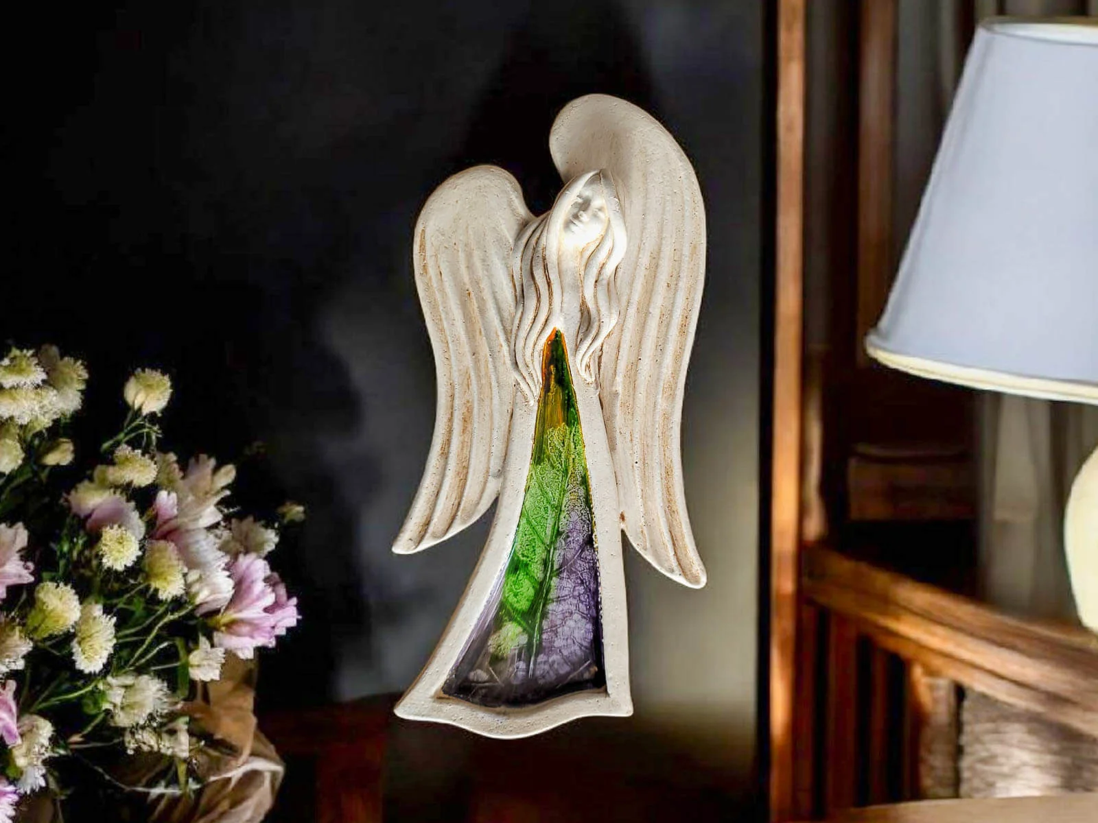 Unikalny anioł Gaja z kolekcji Art. Wyjątkowa uroda, ujmująca delikatność, wielka wrażliwość, kwintesencja kobiecości, pełna miłości, porywająca, a jednocześnie zapewniająca spokój. Zobacz jak pięknie chroni miłość, jak dba i troszczy się o Ciebie i Twoich bliskich, opiekuje, obdarza wiarą dającą siłę, rozlewa radość do każdego zakątka mieszkania, przepełnia je dobrocią, sercem pełnym nadziei, sprawia, że miłość dwojga ludzi jest spokojną przystanią.