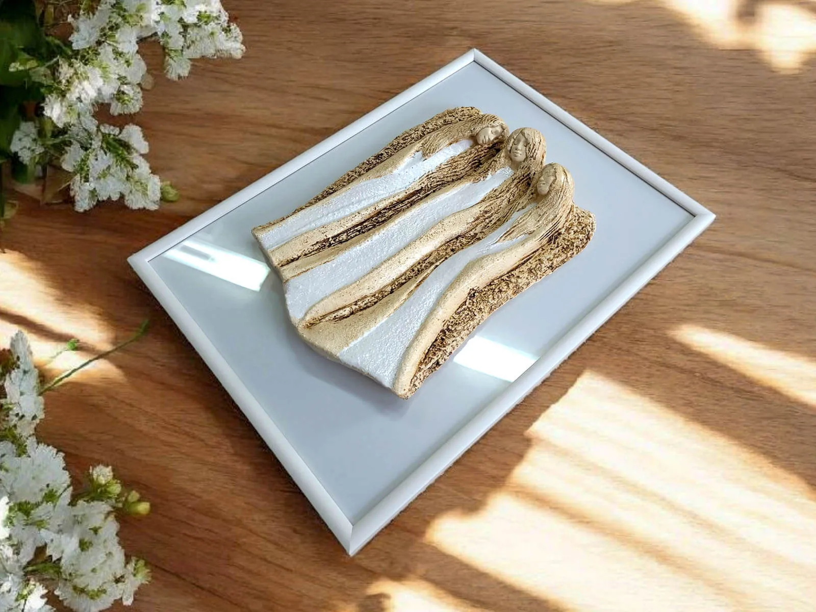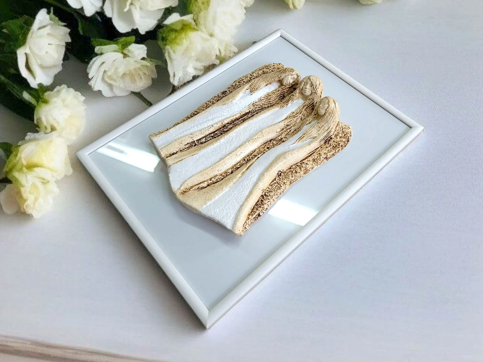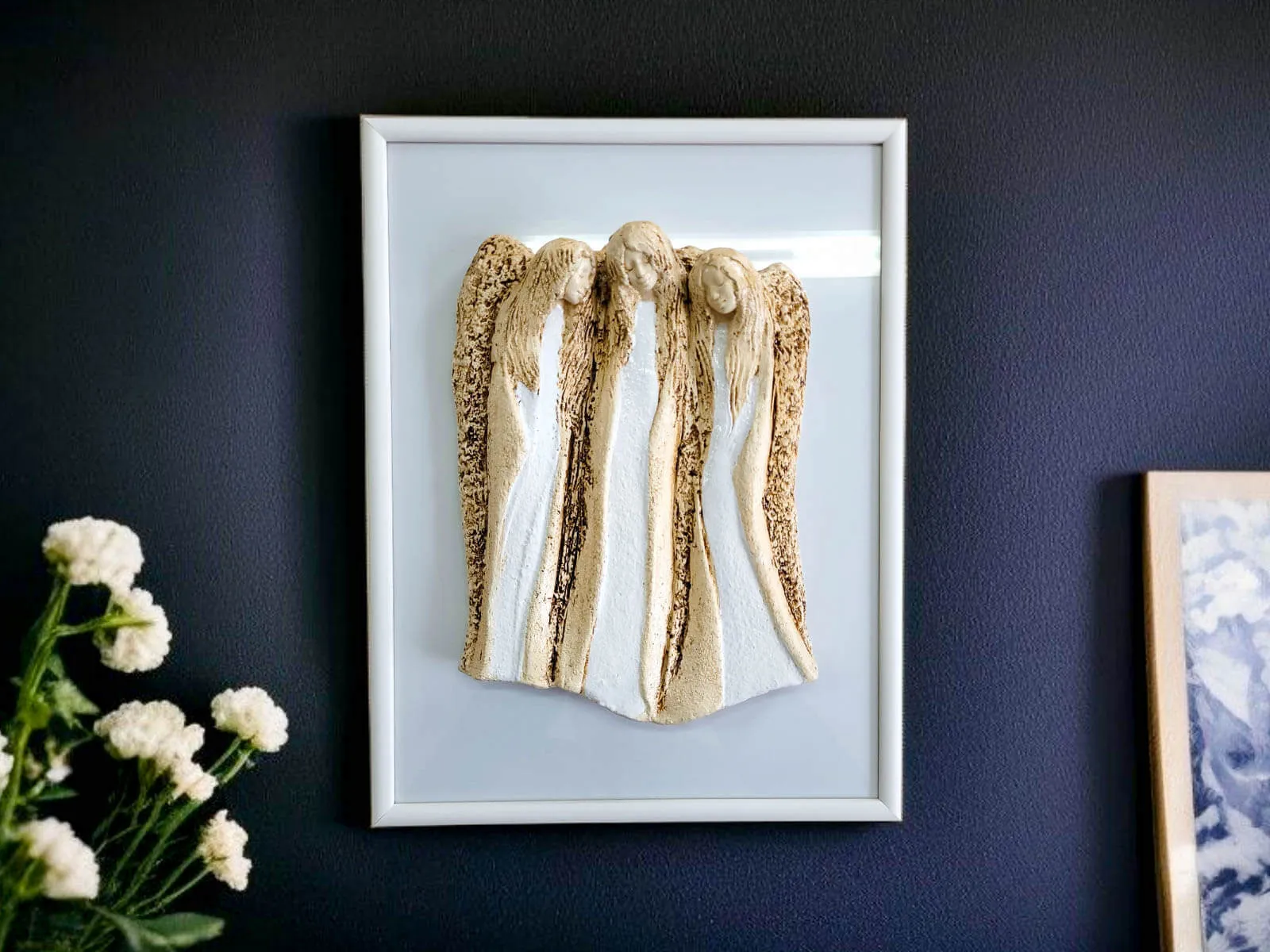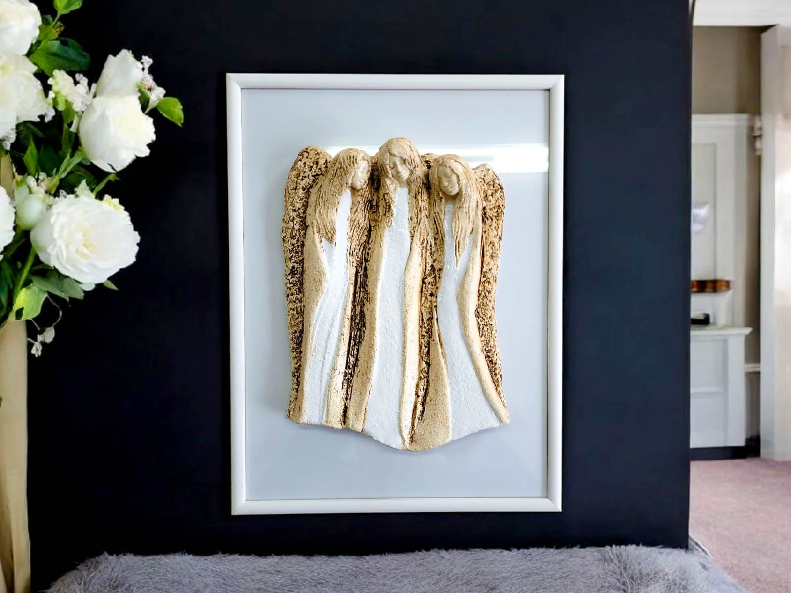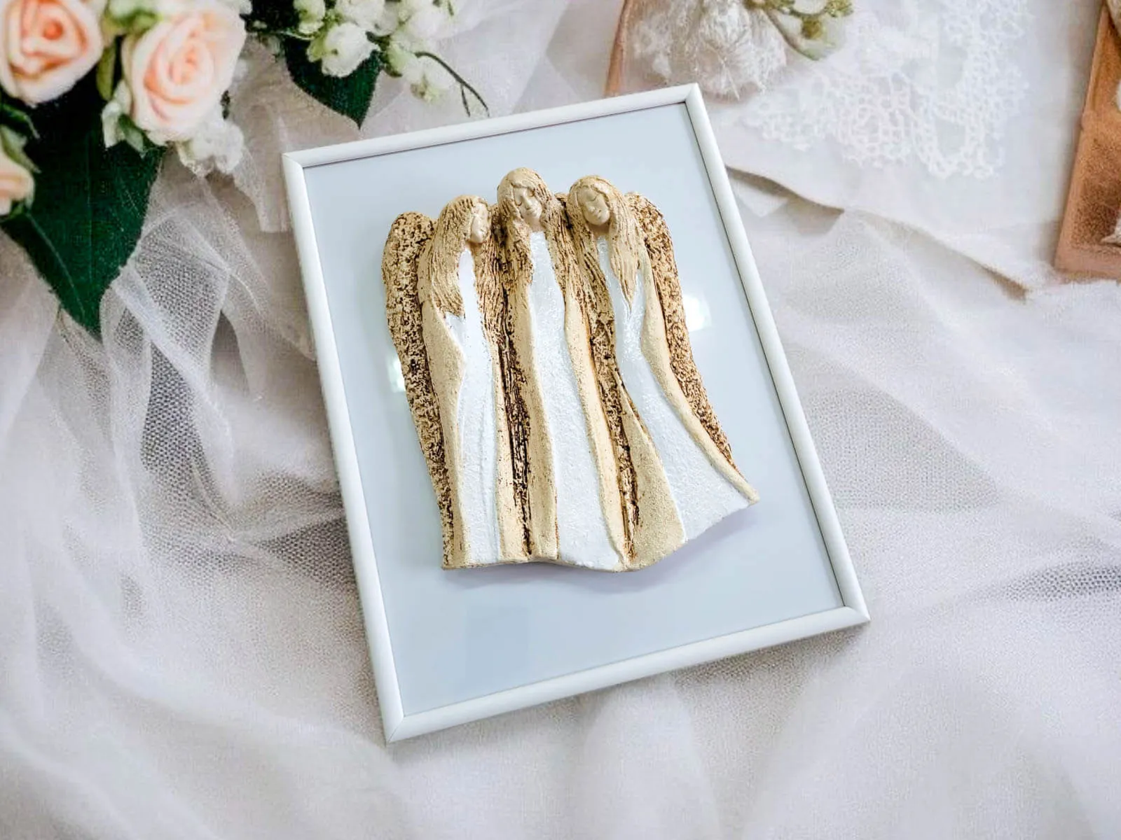 Anioły Wiara, Nadzieja i Miłość w białych sukniach umieszczone na dużej, eleganckiej ramce to symbol wsparcia, nadziei i miłości, który niesie przesłanie o wierze w lepsze jutro, nadziei na zmianę ku dobremu oraz nieustającej obecności miłości. Ich białe suknie symbolizują czystość, niewinność i oczyszczenie.