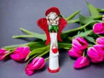 Jeśli anioł ma zostać wręczony jako prezent możemy go również elegancko zapakować w przeźroczysty celofan wiązany ekologicznym sznurkiem. Dzięki temu anioł będzie wyglądał jeszcze bardziej dostojnie i będzie gotowy do wręczenia. Dla wygody możesz również od razu zakupić papierową białą torbę prezentową.