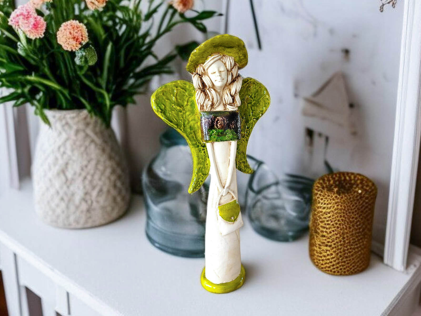Anioła Coco z wyjątkowej kolekcji Art Leaf. Coco to ręcznie wykonana figurka gipsowa w kształcie filigranowej dziewczynki, która wyróżnia się swoim niezwykłym designem i dbałością o detale.