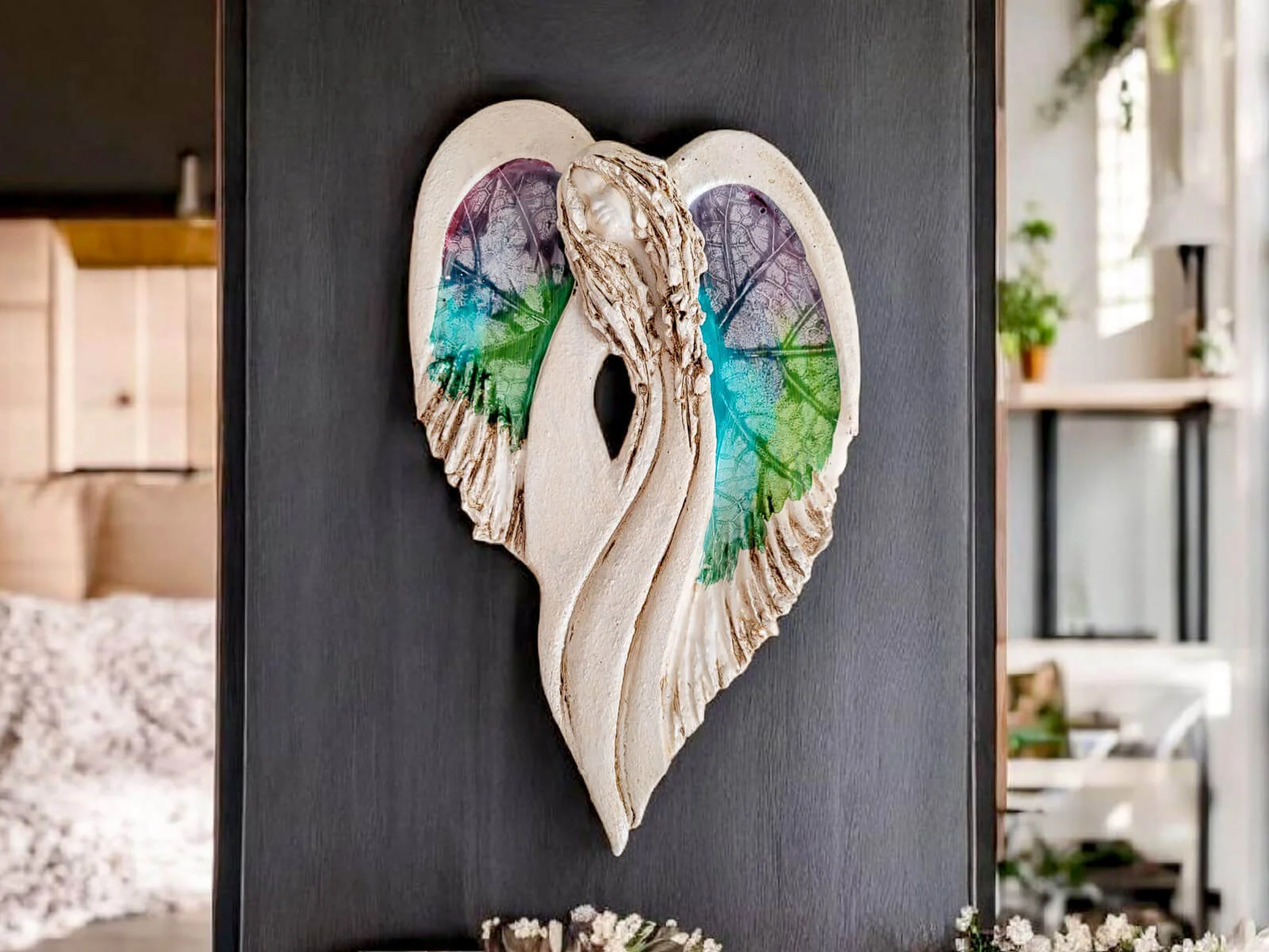 Unikalny anioł Cynthia z kolekcji Art Leaf z wzorami prawdziwych liści. Jedyna sztuka z tym wzorem. Wyjątkowa uroda, ujmująca delikatność, wielka wrażliwość, kwintesencja kobiecości, pełna miłości, porywająca, a jednocześnie zapewniająca spokój. Zobacz jak pięknie chroni miłość, jak dba i troszczy się o Ciebie i Twoich bliskich, opiekuje, obdarza wiarą dającą siłę, rozlewa radość do każdego zakątka mieszkania, przepełnia je dobrocią, sercem pełnym nadziei, sprawia, że miłość dwojga ludzi jest spokojną przystanią.