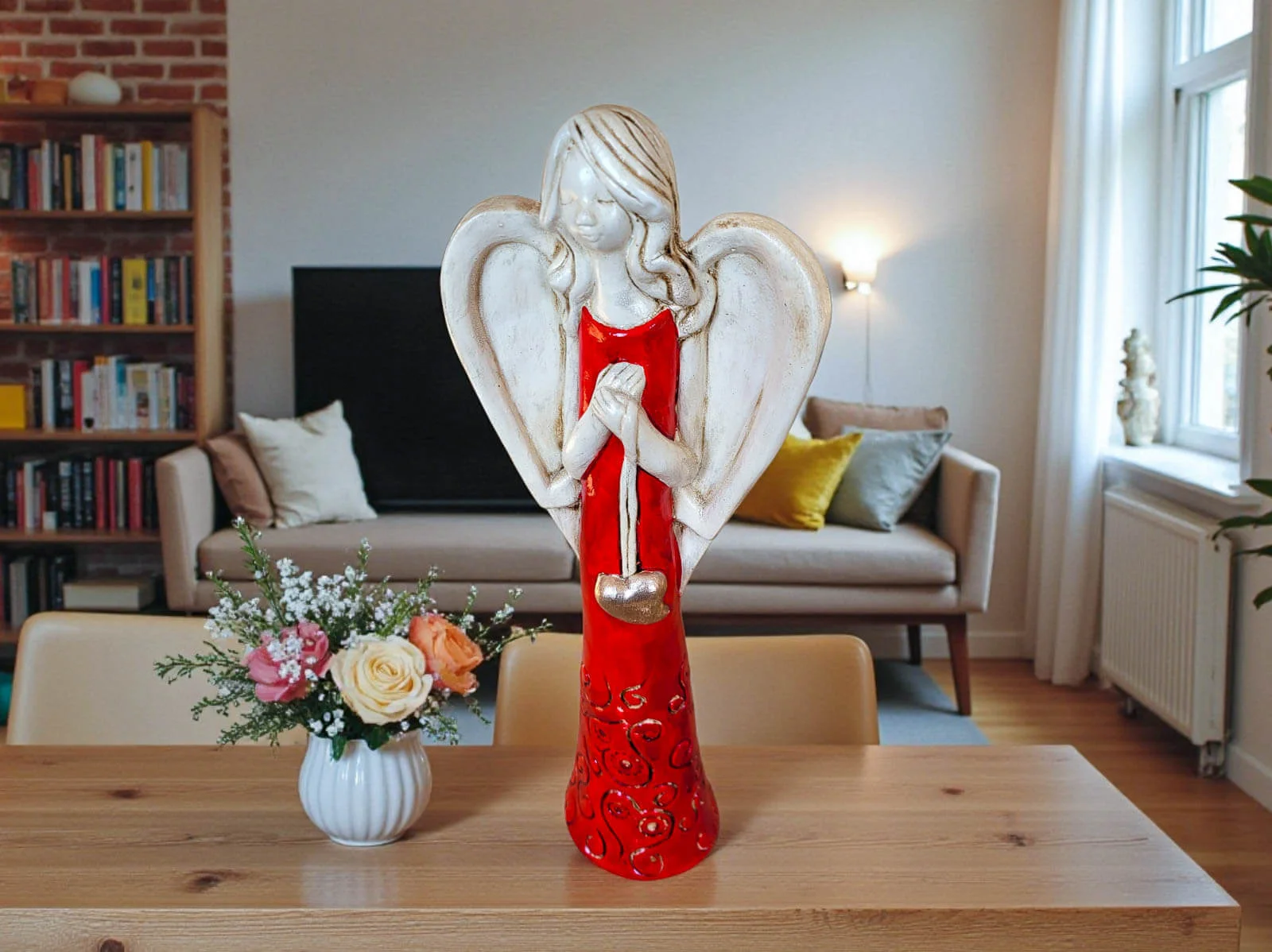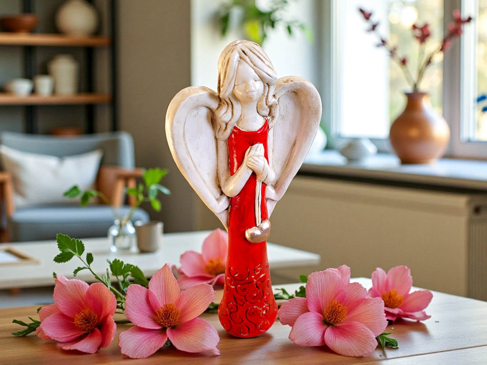 Jeśli anioł ma zostać wręczony jako prezent możemy go również elegancko zapakować w przeźroczysty celofan wiązany ekologicznym sznurkiem. Dzięki temu anioł będzie wyglądał jeszcze bardziej dostojnie i będzie gotowy do wręczenia. Dla wygody możesz również od razu zakupić papierową białą torbę prezentową.