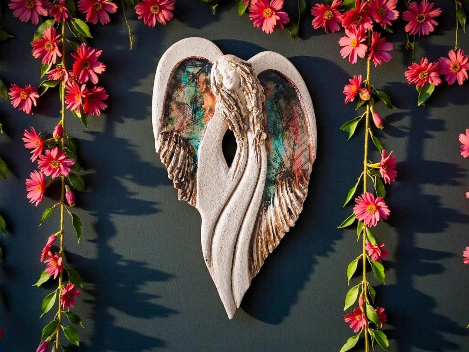 Unikalny anioł Cynthia z kolekcji Art Leaf z wzorami prawdziwych liści. Jedyna sztuka z tym wzorem. Wyjątkowa uroda, ujmująca delikatność, wielka wrażliwość, kwintesencja kobiecości, pełna miłości, porywająca, a jednocześnie zapewniająca spokój. Zobacz jak pięknie chroni miłość, jak dba i troszczy się o Ciebie i Twoich bliskich, opiekuje, obdarza wiarą dającą siłę, rozlewa radość do każdego zakątka mieszkania, przepełnia je dobrocią, sercem pełnym nadziei, sprawia, że miłość dwojga ludzi jest spokojną przystanią.