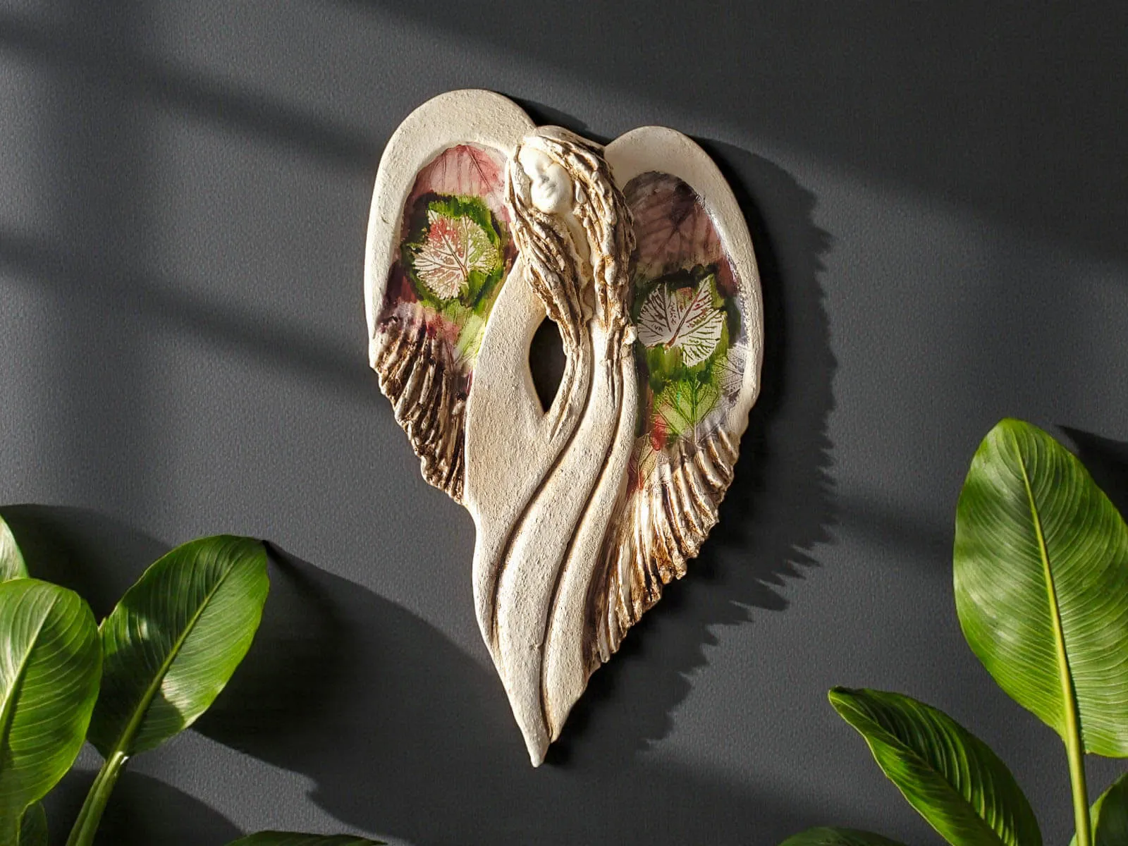 Unikalny anioł Cynthia z kolekcji Art Leaf z wzorami prawdziwych liści. Jedyna sztuka z tym wzorem. Wyjątkowa uroda, ujmująca delikatność, wielka wrażliwość, kwintesencja kobiecości, pełna miłości, porywająca, a jednocześnie zapewniająca spokój. Zobacz jak pięknie chroni miłość, jak dba i troszczy się o Ciebie i Twoich bliskich, opiekuje, obdarza wiarą dającą siłę, rozlewa radość do każdego zakątka mieszkania, przepełnia je dobrocią, sercem pełnym nadziei, sprawia, że miłość dwojga ludzi jest spokojną przystanią.