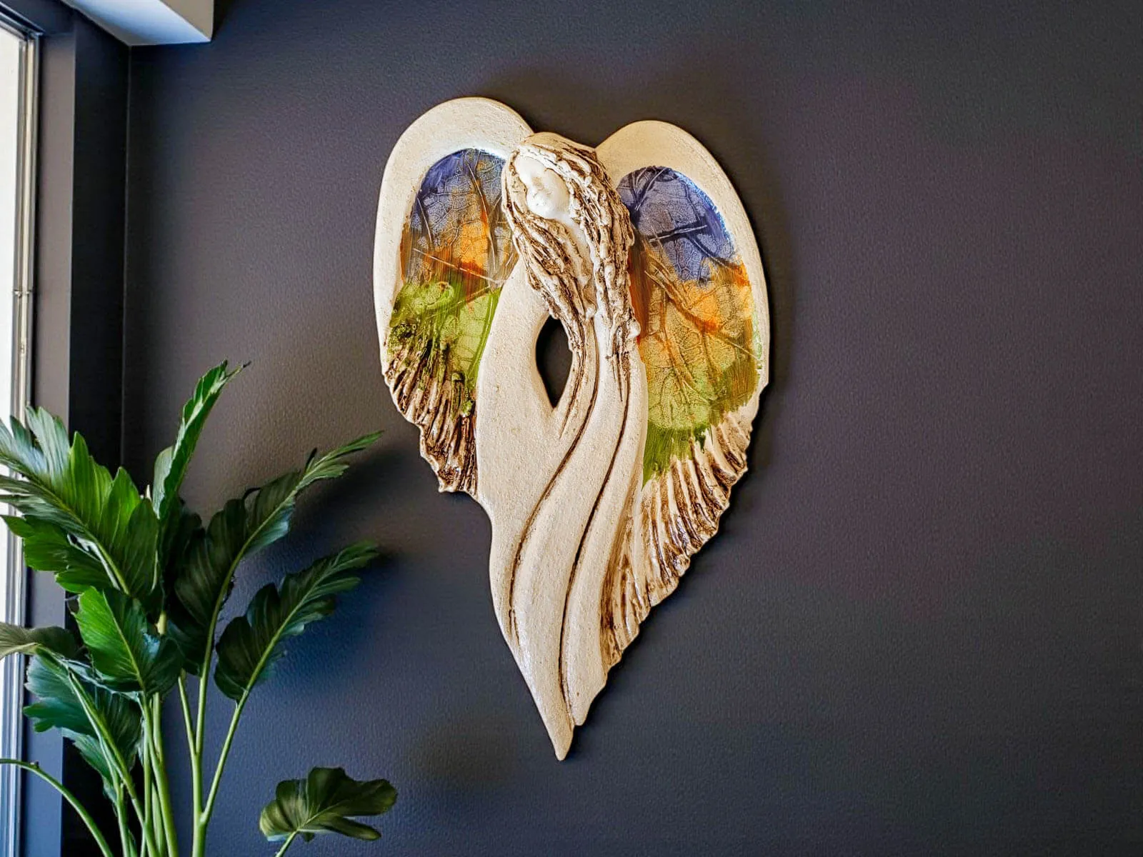 Unikalny anioł Cynthia z kolekcji Art Leaf z wzorami prawdziwych liści. Jedyna sztuka z tym wzorem. Wyjątkowa uroda, ujmująca delikatność, wielka wrażliwość, kwintesencja kobiecości, pełna miłości, porywająca, a jednocześnie zapewniająca spokój. Zobacz jak pięknie chroni miłość, jak dba i troszczy się o Ciebie i Twoich bliskich, opiekuje, obdarza wiarą dającą siłę, rozlewa radość do każdego zakątka mieszkania, przepełnia je dobrocią, sercem pełnym nadziei, sprawia, że miłość dwojga ludzi jest spokojną przystanią.