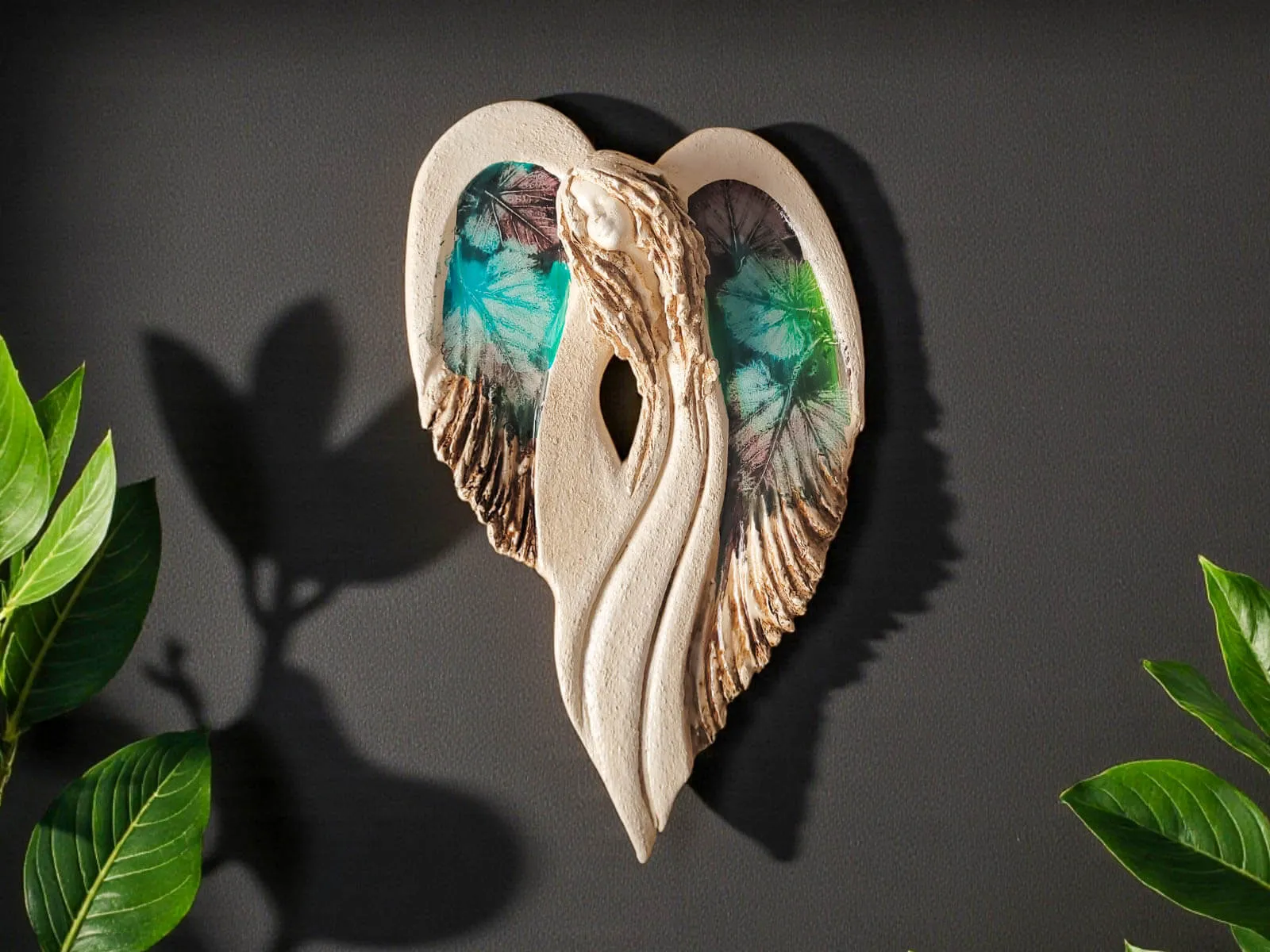 Unikalny anioł Cynthia z kolekcji Art Leaf z wzorami prawdziwych liści. Jedyna sztuka z tym wzorem. Wyjątkowa uroda, ujmująca delikatność, wielka wrażliwość, kwintesencja kobiecości, pełna miłości, porywająca, a jednocześnie zapewniająca spokój. Zobacz jak pięknie chroni miłość, jak dba i troszczy się o Ciebie i Twoich bliskich, opiekuje, obdarza wiarą dającą siłę, rozlewa radość do każdego zakątka mieszkania, przepełnia je dobrocią, sercem pełnym nadziei, sprawia, że miłość dwojga ludzi jest spokojną przystanią.