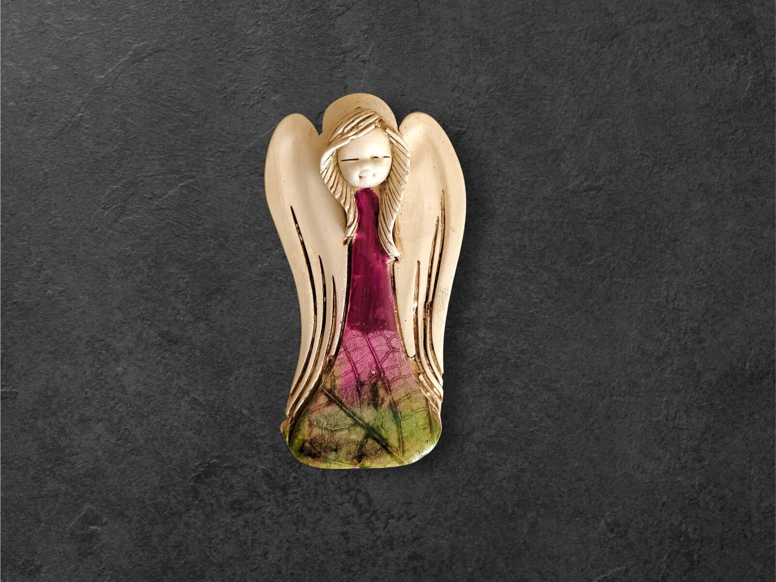 Ręcznie robiony aniołek Liolinka Lilionka z wzorami liści. Unikalna kolekcja Art Leaf.