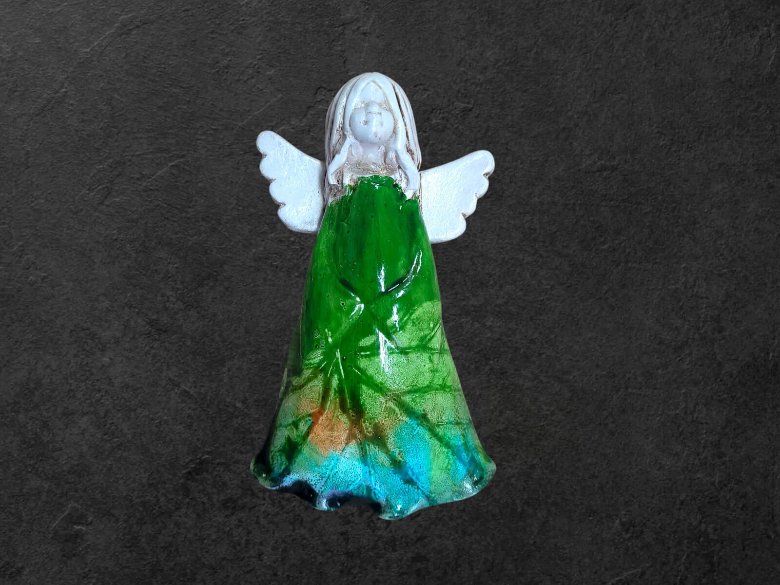 Anioł Monica z kolekcji Art Leaf w kolorze zielonym to ręcznie wykonana figurka do zawieszenia na ścianę. Monica to śliczna i młoda dziewczynka pełna ciepła i czułości. Anieliczka jest ubrana w zwiewną, sukienkę z wzorami. Figurka idealnie sprawdzi się jako prezent urodzinowy dla dziewczynki. Świetnie wkomponuje się w klasyczne jaki i nowoczesne wnętrze.