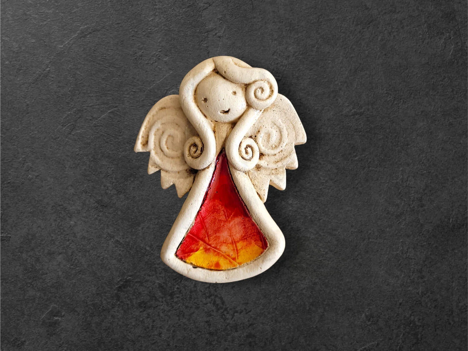 Ręcznie robiony aniołek Niunia w unikatowej wersji Art Leaf z liściem. Niunia jest śliczną dziewczynką, która całym sercem kocha swoją rodzinę. Jest troskliwa, martwi się o innych. Jest ubrana w kolorową sukienkę z wzorem liścia. Ma delikatne skrzydełka. Kolor czerwony jest symbolem miłości i namiętności. Figurka idealnie nadaje się na prezent dla ukochanej osoby z okazji walentynek.