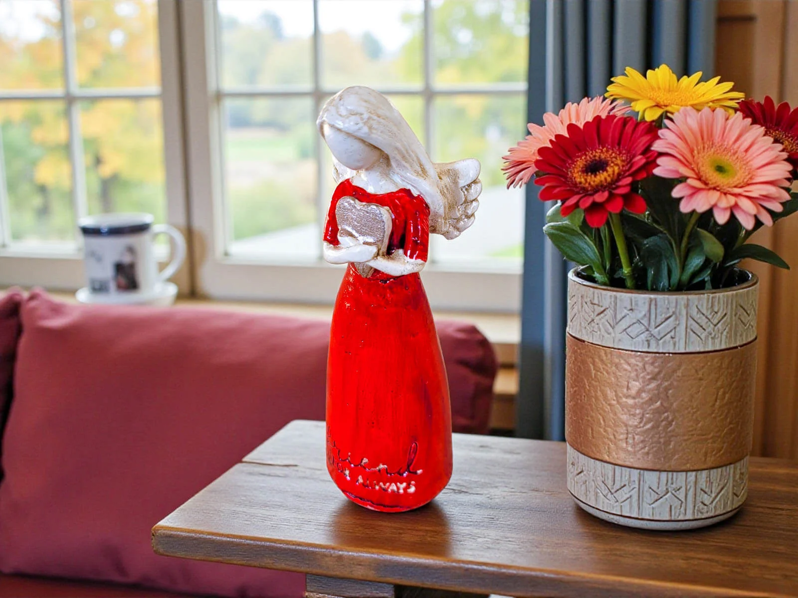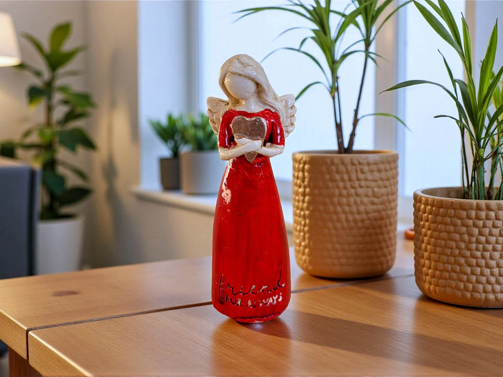 Jeśli anioł ma zostać wręczony jako prezent możemy go również elegancko zapakować w przeźroczysty celofan wiązany ekologicznym sznurkiem. Dzięki temu anioł będzie wyglądał jeszcze bardziej dostojnie i będzie gotowy do wręczenia. Dla wygody możesz również od razu zakupić papierową białą torbę prezentową.