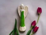 Jeśli anioł ma zostać wręczony jako prezent możemy go również elegancko zapakować w przeźroczysty celofan wiązany ekologicznym sznurkiem. Dzięki temu anioł będzie wyglądał jeszcze bardziej dostojnie i będzie gotowy do wręczenia. Dla wygody możesz również od razu zakupić papierową białą torbę prezentową.