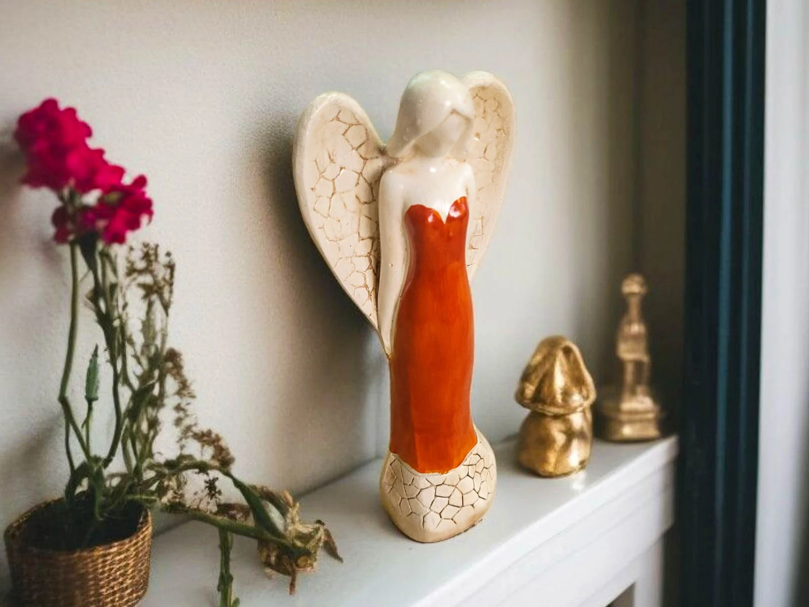 Figurka Anioła Emily to tajemnicza dama, której elegancja i delikatność z pewnością przyciągną uwagę i wniosą do przestrzeni wyjątkowy urok. Ta ręcznie robiona ozdoba nie tylko dekoruje, ale także stanowi unikalny prezent, idealny na różne okazje.