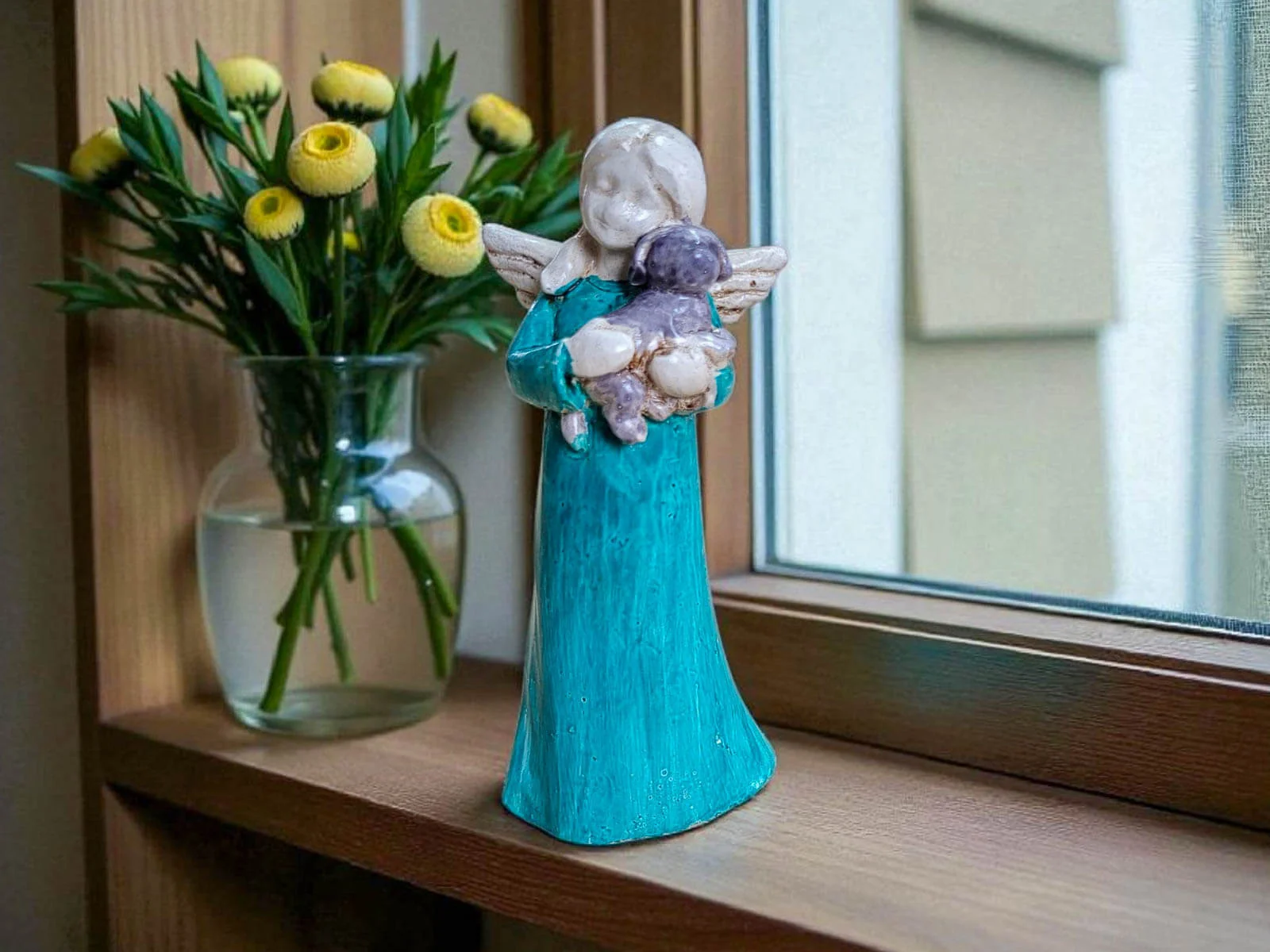 Urocza, ręcznie robiona figurka przedstawiająca małego aniołka – dziewczynkę trzymającą w ramionach pieska. Każdy egzemplarz wykonany jest z niezwykłą dbałością o szczegóły przez polskiego artystę, dzięki czemu każda figurka jest niepowtarzalna.