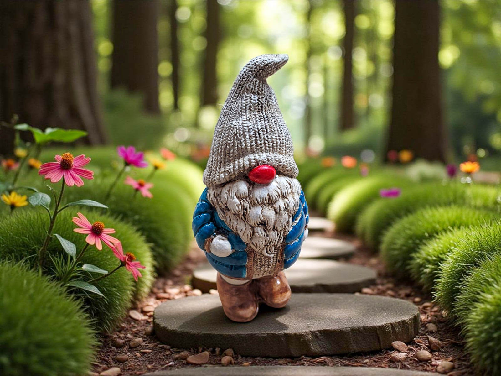 Skrzat ubrany jest w turkusową puchową, pikowaną kurtkę, która nadaje mu przytulny, zimowy charakter. Na głowie ma ciepłą, miękką czapę, opadającą na oczy, co dodaje mu uroku i tajemniczości. Jego długa, gęsta broda oraz duży, czerwony nos sprawiają, że wygląda niezwykle sympatycznie – jak prawdziwy strażnik domowego ciepła i świątecznego nastroju.