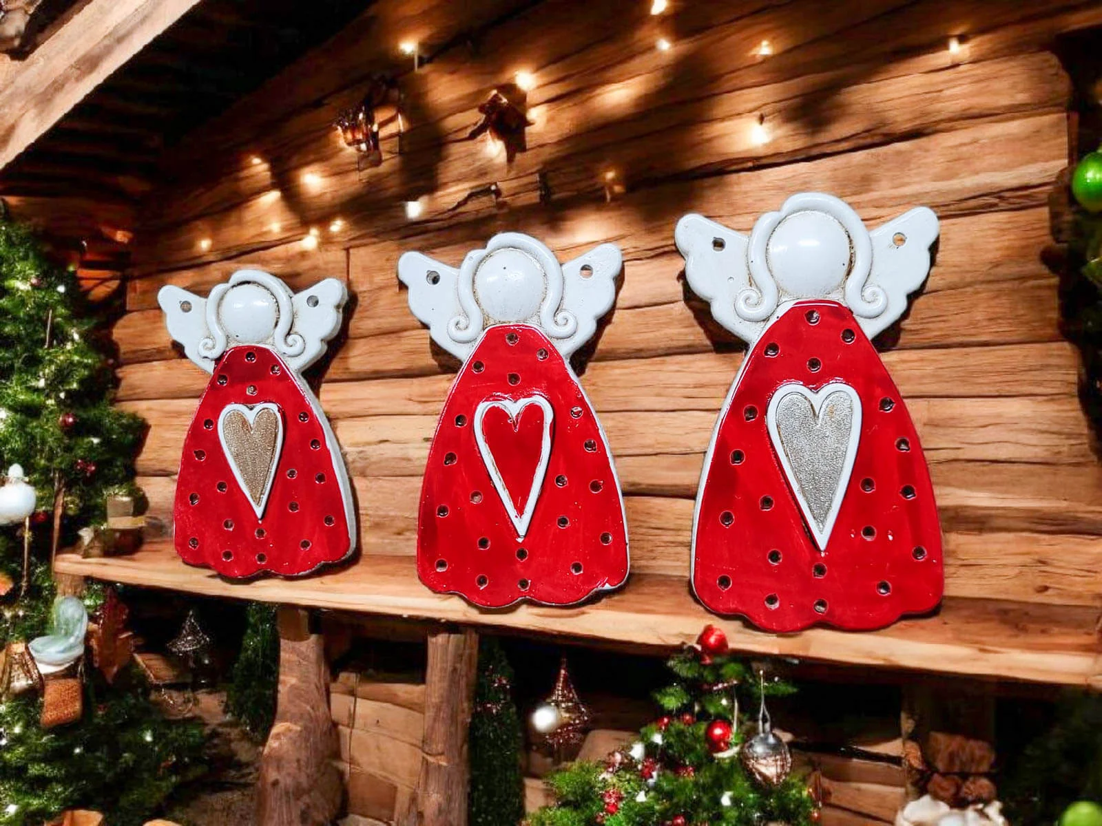 Każdy aniołek ma w centrum serce, symbol ciepła, radości i świątecznej miłości. Zawieszone na choince, ścianie czy w oknie, wnoszą do wnętrza przytulny, tradycyjny klimat świąt.