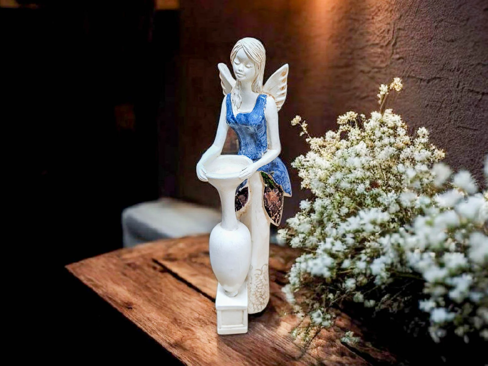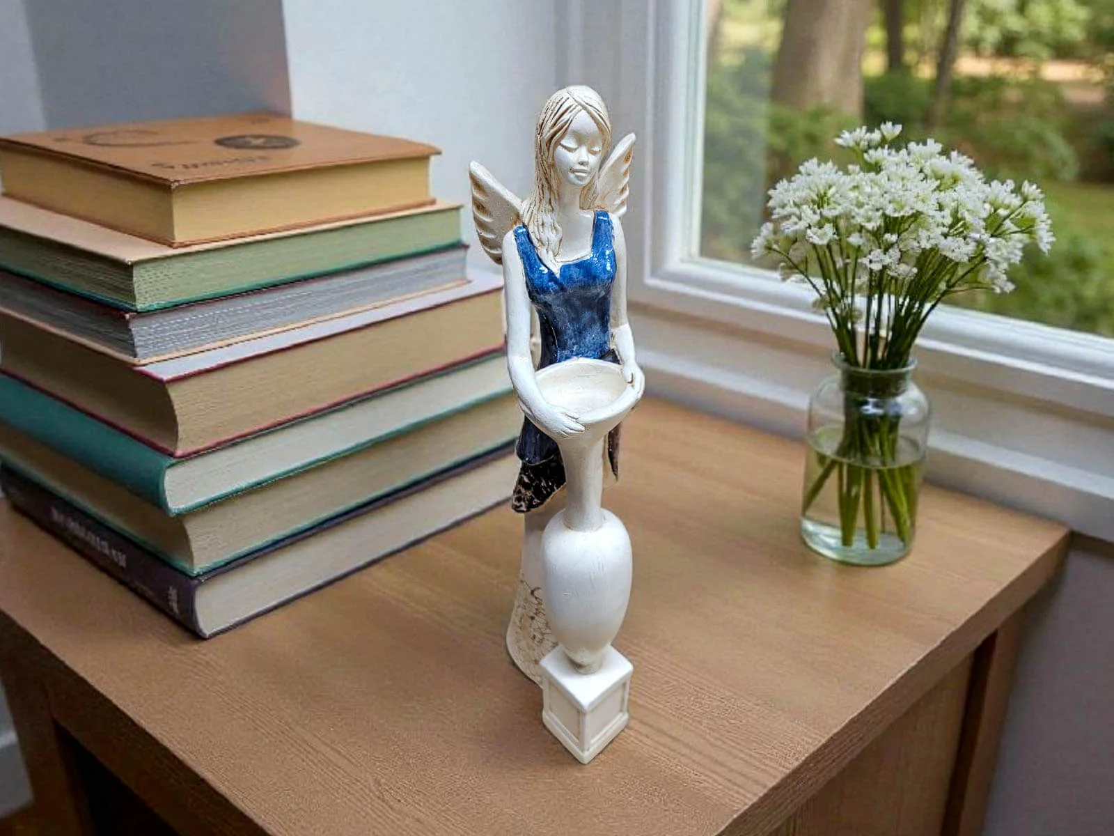 Suri jest garncarką, która swoimi zgrabnymi dłońmi tworzy naczynia. Daje jej to wiele radości, a przedmioty, które wyszły spod jej rąk są jedyne w swoim rodzaju. Jej niebieska suknia podkreśla delikatność, a włosy opadające na ramiona dodają jej kobiecości. Figurka może pięknie ozdabiać salon, tworząc niezwykłą atmosferę będą lampionem z palącym tea lightem.