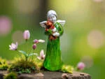 Aniołek ubrany jest w zieloną sukienkę, symbolizującą spokój, harmonię i opiekę. To wyjątkowa ozdoba, która wnosi ciepło i pozytywną energię do każdego wnętrza. Idealny prezent dla bliskiej osoby lub piękny dodatek do kolekcji aniołków.