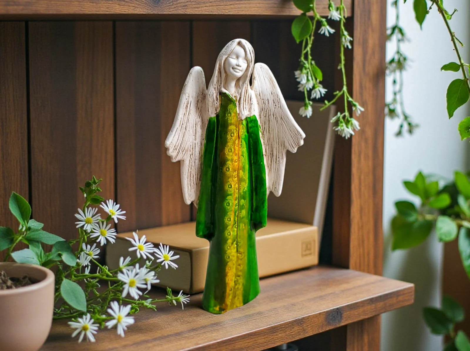 Anioł Julia Art - zielona - 27 x 14 cm figurka dekoracyjna gipsowa