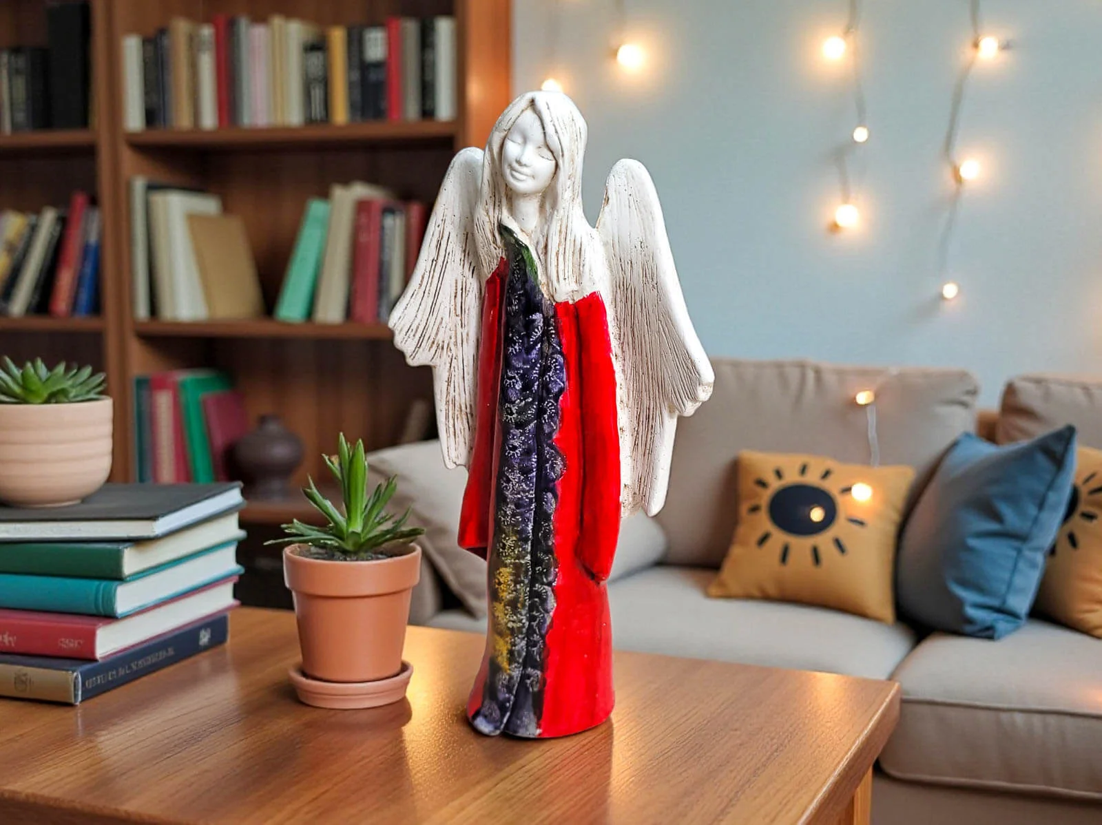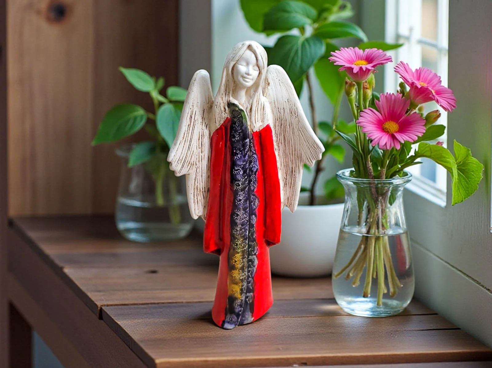 • Anioł Julia Art - czerwona -  27 x 14 cm figurka dekoracyjna gipsowa