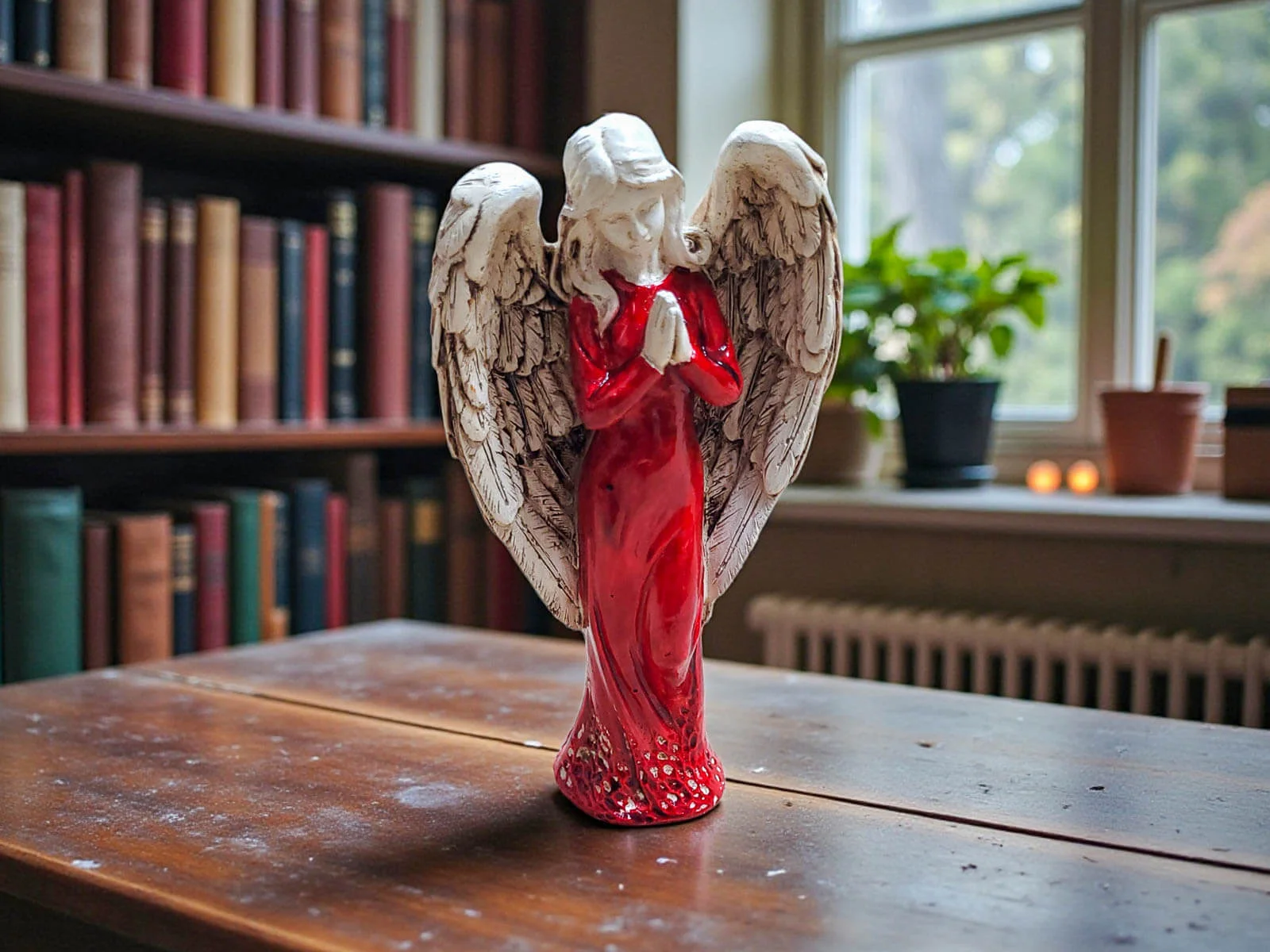 Ręcznie wykonana figurka Anioła Stróża w czerwonej sukni to wyjątkowy symbol opieki, spokoju i duchowej bliskości. Utrzymana w szlachetnej bieli, o wysokości 20 cm, emanuje delikatnością i harmonią, wprowadzając do wnętrza atmosferę ciszy, bezpieczeństwa i nadziei. To nie jest masowa dekoracja – każdy Anioł powstaje w małej polskiej manufakturze, gdzie rzemiosło, uważność i serce wkładane w każdy detal sprawiają, że każda sztuka jest niepowtarzalna.