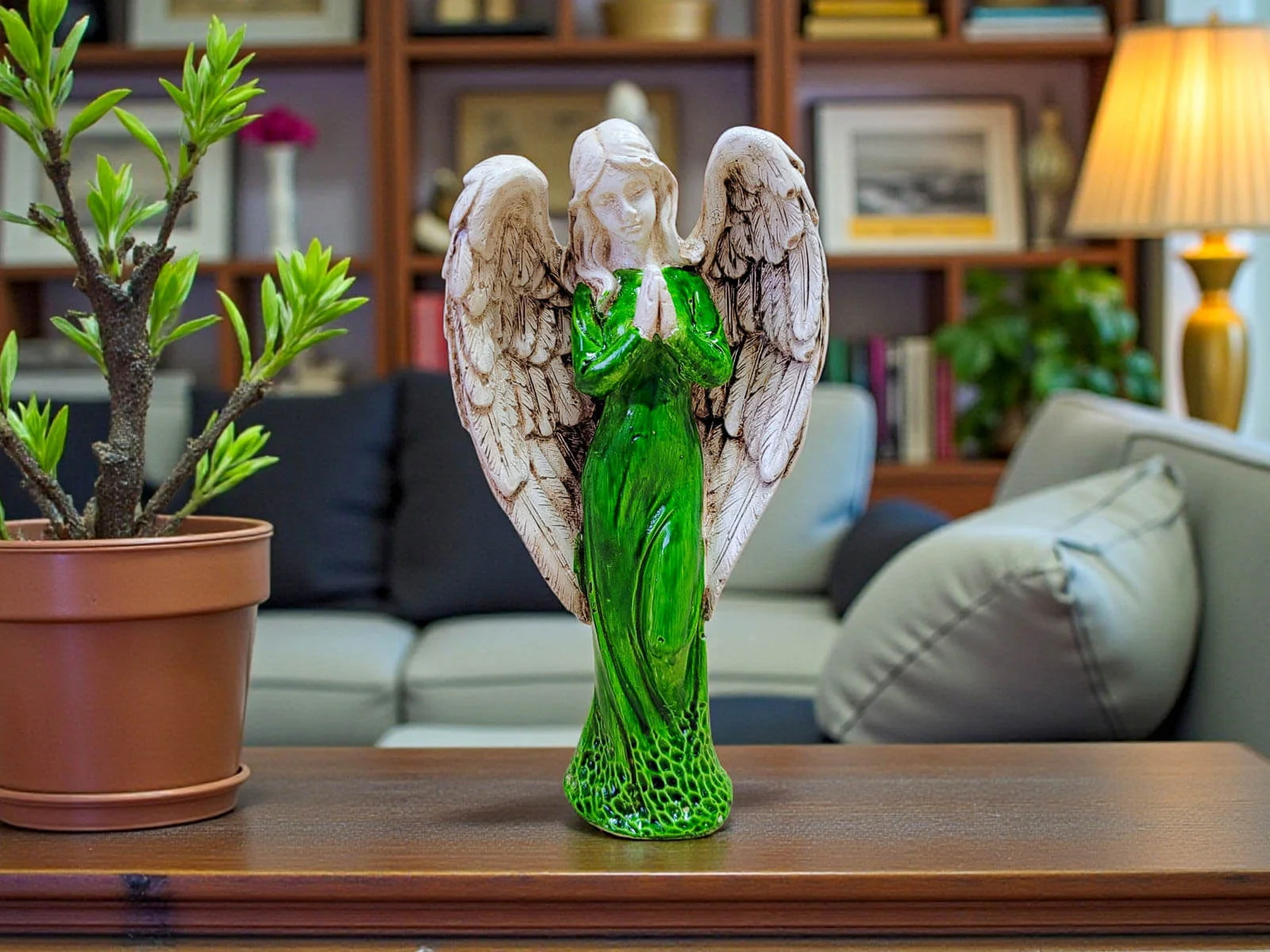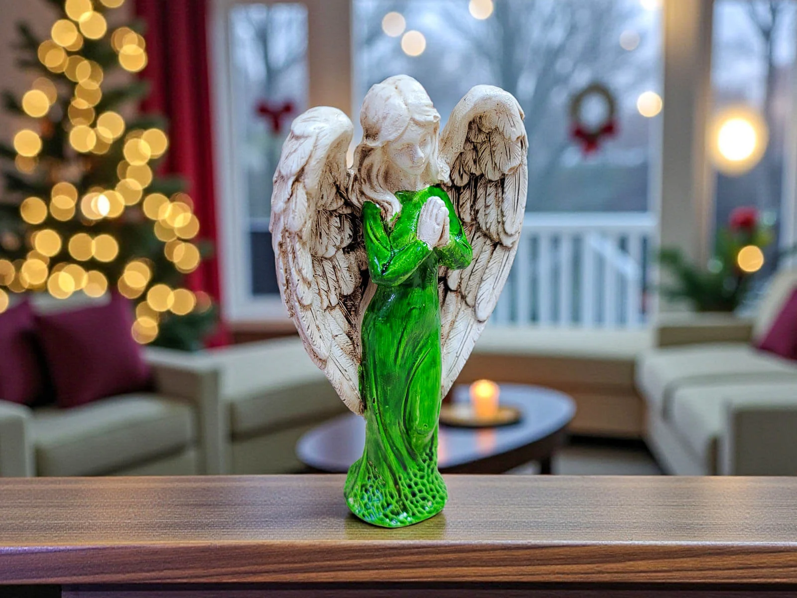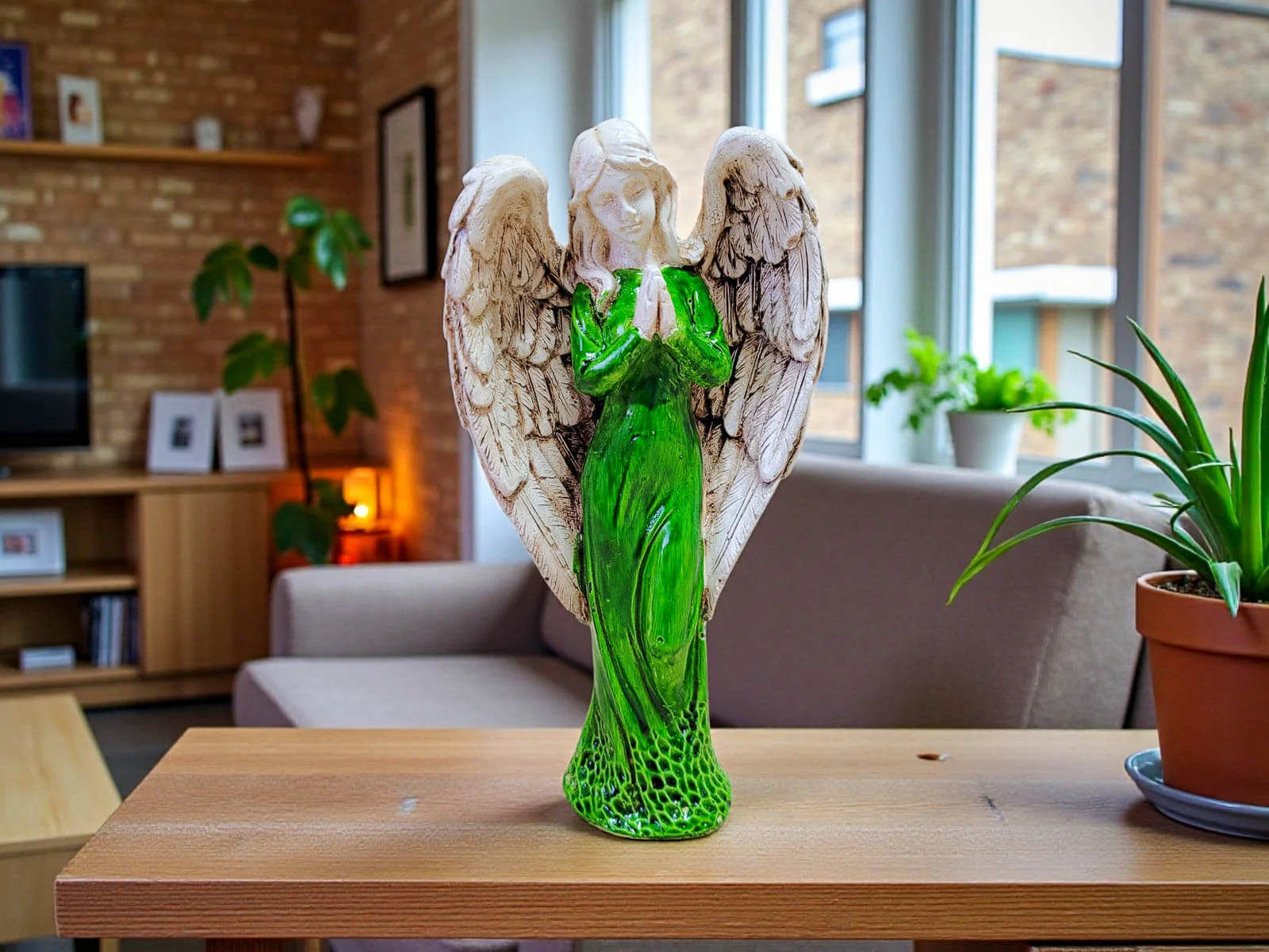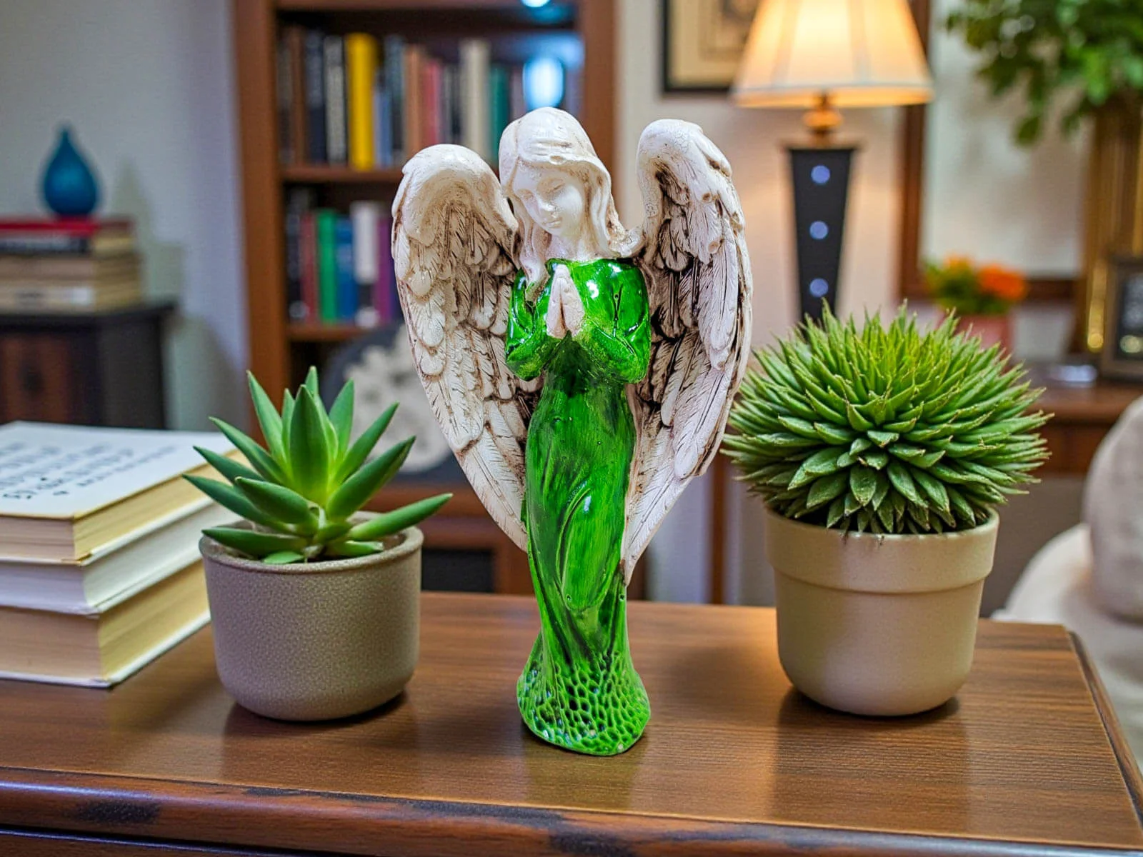 Ręcznie wykonana figurka Anioła Stróża w zielonej sukni to wyjątkowy symbol opieki, spokoju i duchowej bliskości. Utrzymana w szlachetnej bieli, o wysokości 20 cm, emanuje delikatnością i harmonią, wprowadzając do wnętrza atmosferę ciszy, bezpieczeństwa i nadziei. To nie jest masowa dekoracja – każdy Anioł powstaje w małej polskiej manufakturze, gdzie rzemiosło, uważność i serce wkładane w każdy detal sprawiają, że każda sztuka jest niepowtarzalna.