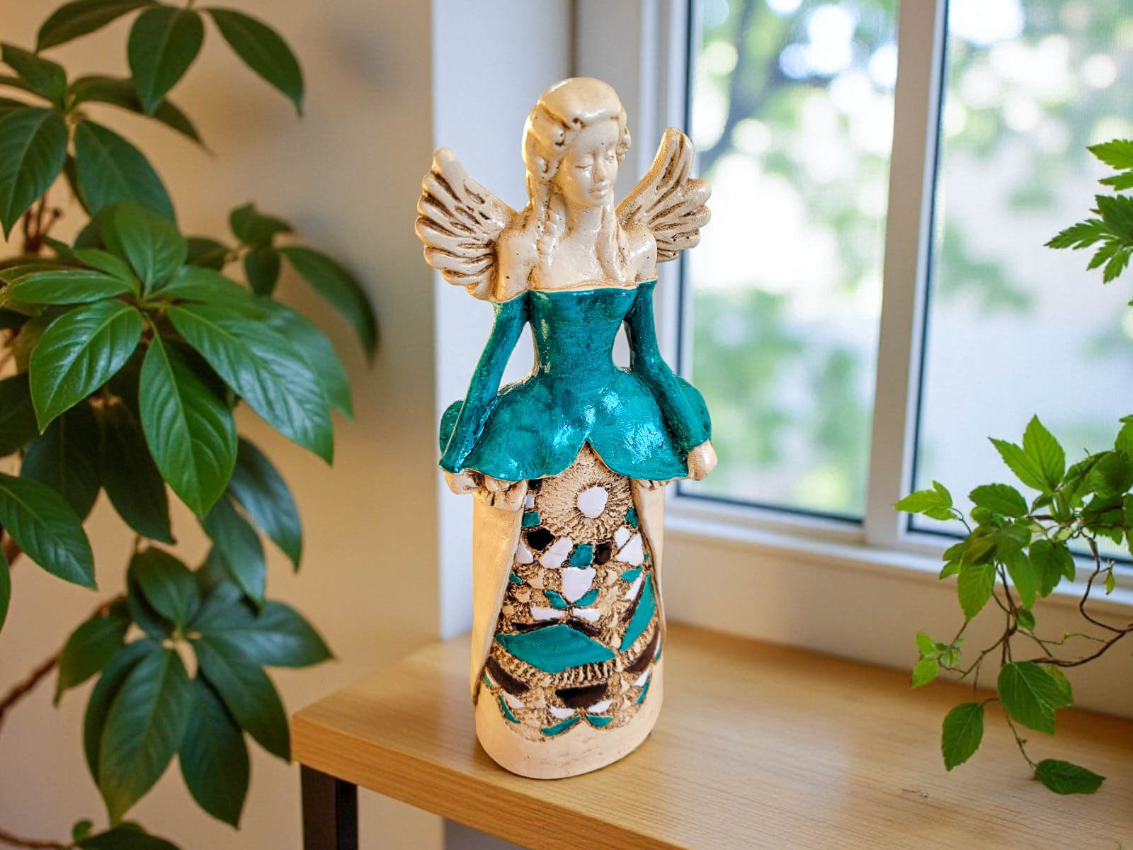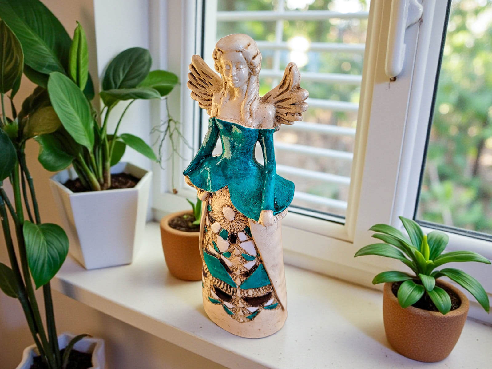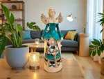 Jeśli anioł ma zostać wręczony jako prezent możemy go również elegancko zapakować w przeźroczysty celofan wiązany ekologicznym sznurkiem. Dzięki temu anioł będzie wyglądał jeszcze bardziej dostojnie i będzie gotowy do wręczenia. Dla wygody możesz również od razu zakupić papierową białą torbę prezentową.