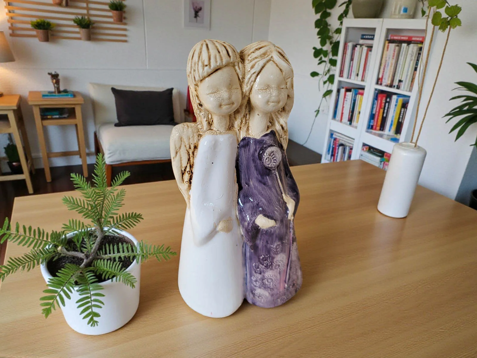 Aniołki Apple i Ella z kolekcji Art to ręcznie wykonane figurki w białym i szarym, stalowym kolorze z delikatnymi wzorkami, które natychmiast przyciągają wzrok. Maleńkie aniołki trzymają się za ręce i uśmiechają, tworząc obraz bliskości i radości.