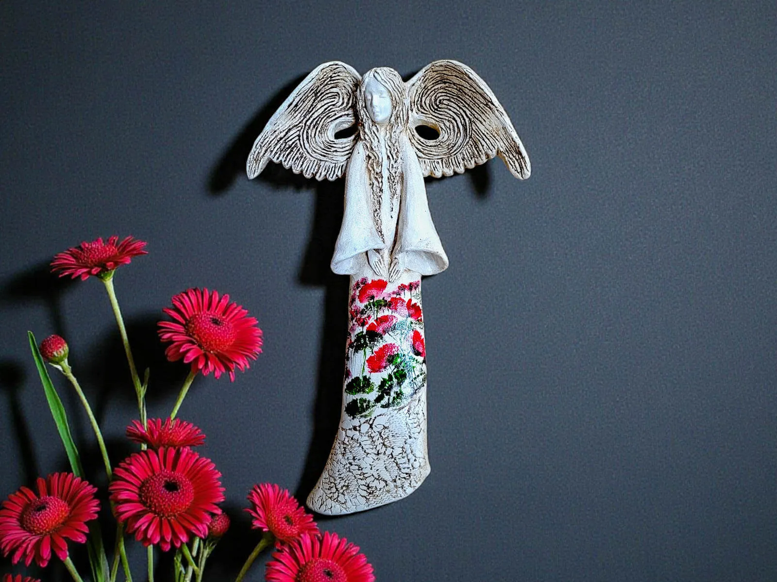 Anioł Clara z limitowanej kolekcji Art Flower to wyjątkowa figurka, która przyciąga wzrok ręcznie malowanymi kwiatami i wyrazistą symboliką. Dla wielu osób jest znakiem miłości, namiętności oraz energii do działania – piękną dekoracją z głębszym przesłaniem.