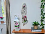 Komplet aniołów Genesis i Anna to wyjątkowy, ręcznie wykonany zestaw dekoracyjny w harmonijnym połączeniu kolorów fuksji i zieleni. W skład kompletu wchodzi anioł Genesis do zawieszenia na ścianie oraz stojąca figurka anioła Anna, które razem tworzą spójną, pełną symboliki kompozycję.