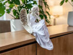 Jeśli anioł ma zostać wręczony jako prezent możemy go również elegancko zapakować w przeźroczysty celofan wiązany ekologicznym sznurkiem. Dzięki temu anioł będzie wyglądał jeszcze bardziej dostojnie i będzie gotowy do wręczenia. Dla wygody możesz również od razu zakupić papierową białą torbę prezentową.