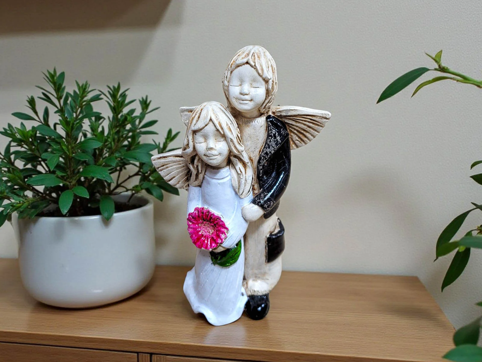 Te piękne anioły doskonale komponują się z każdym wnętrzem lub ogrodem, dodając mu uroku i duchowej głębi. Ich obecność przynosi poczucie spokoju, miłości i błogosławieństwa, czyniąc każdy moment jeszcze bardziej wyjątkowym i pełnym znaczenia.