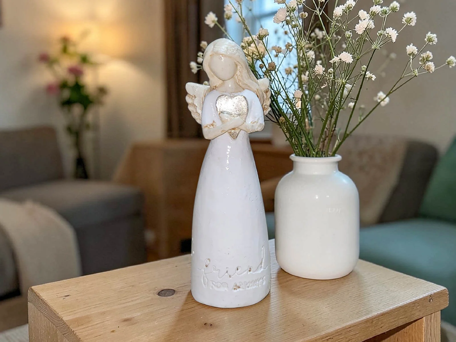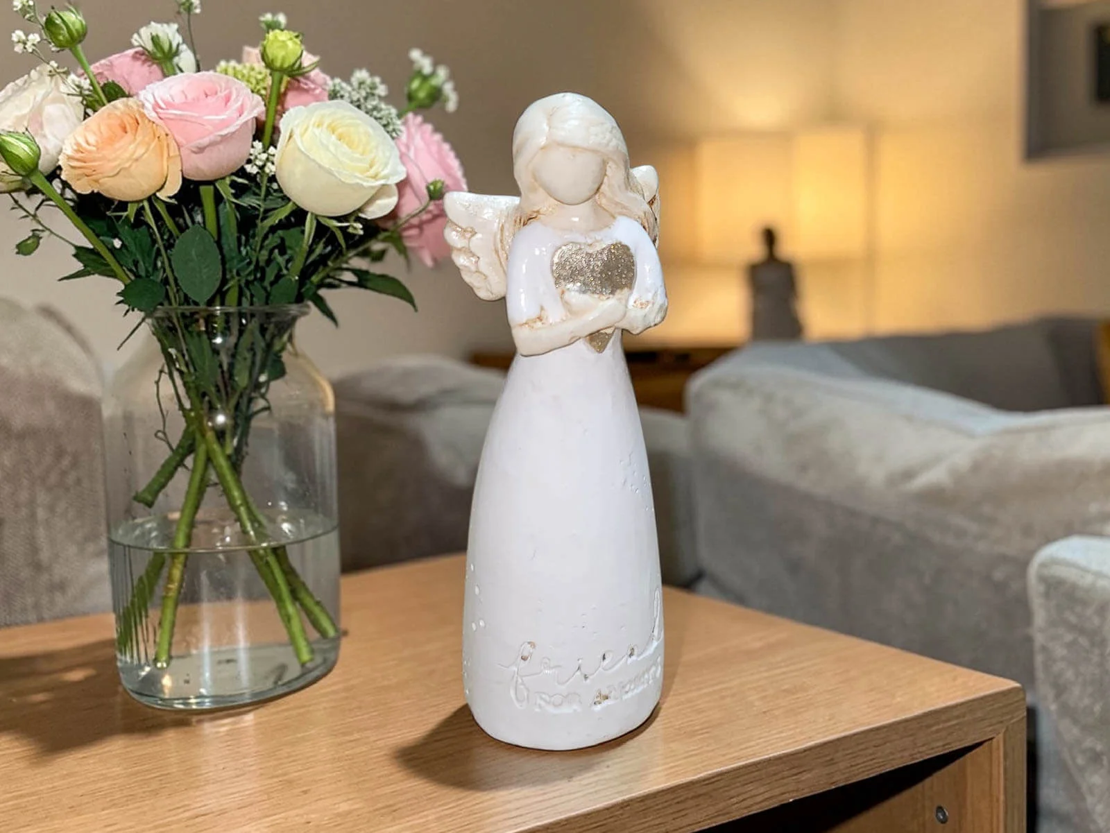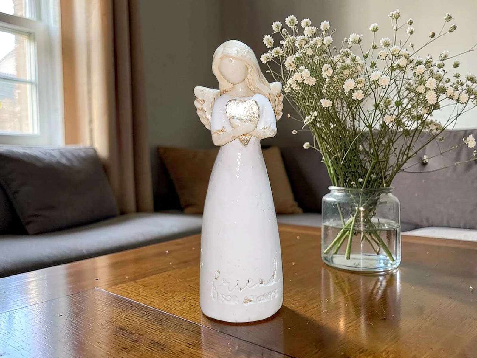 Angel with heart - white - 15 x 7.5 cm decorative figurine
