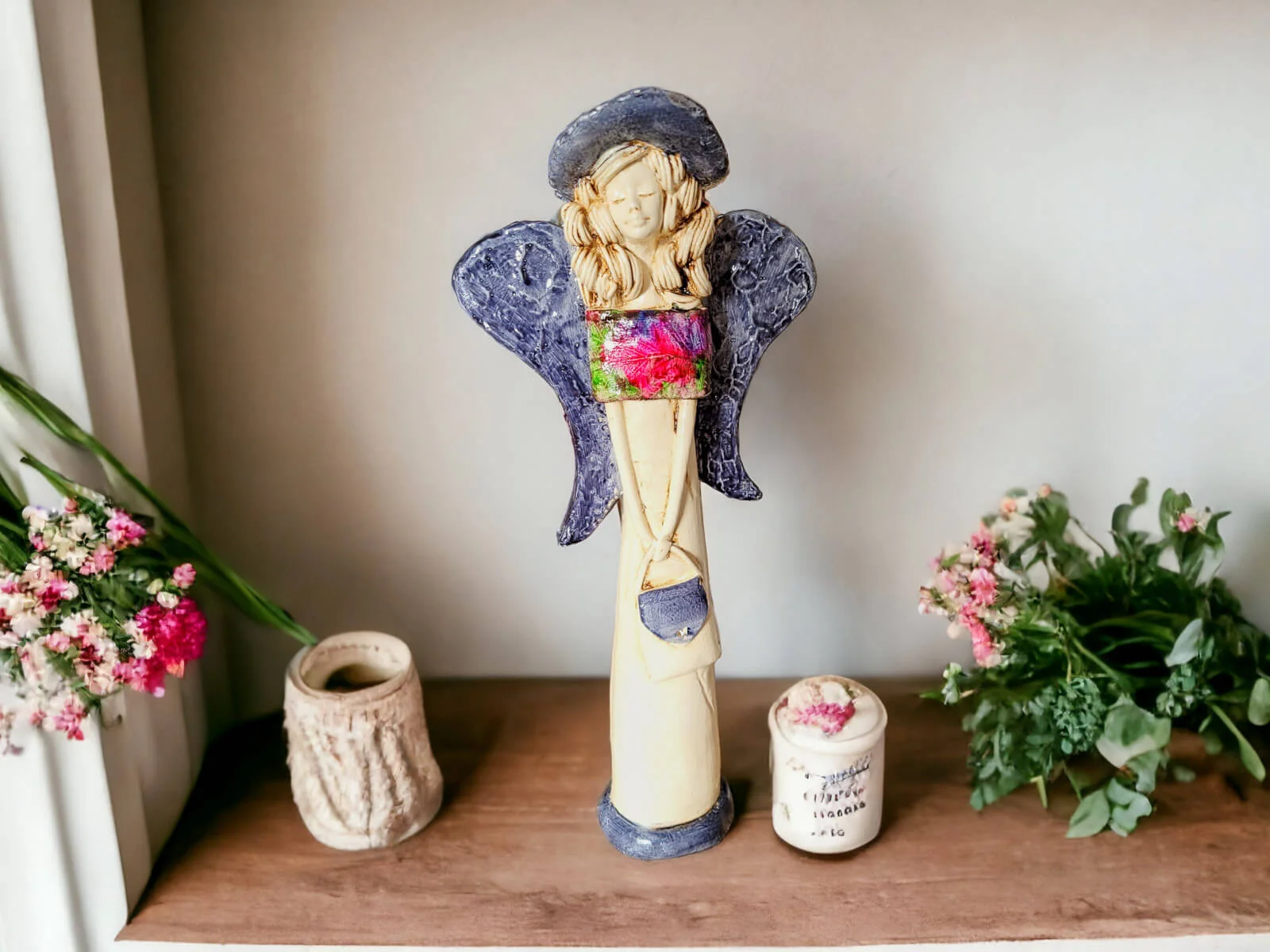Aniołek Megan - granat -  20 x 9 cm figurka dekoracyjna gipsowa