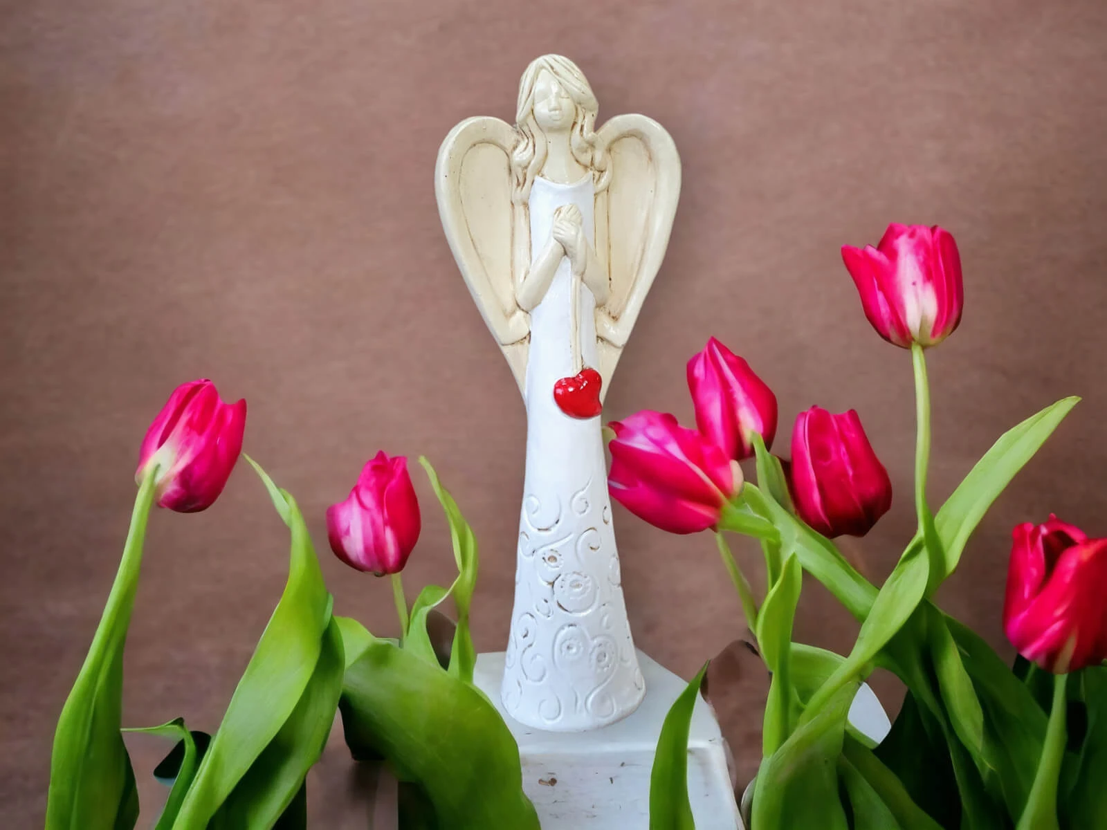 Anioł z Sercem - biały - 35 x 15 cm figurka dekoracyjna gipsowa