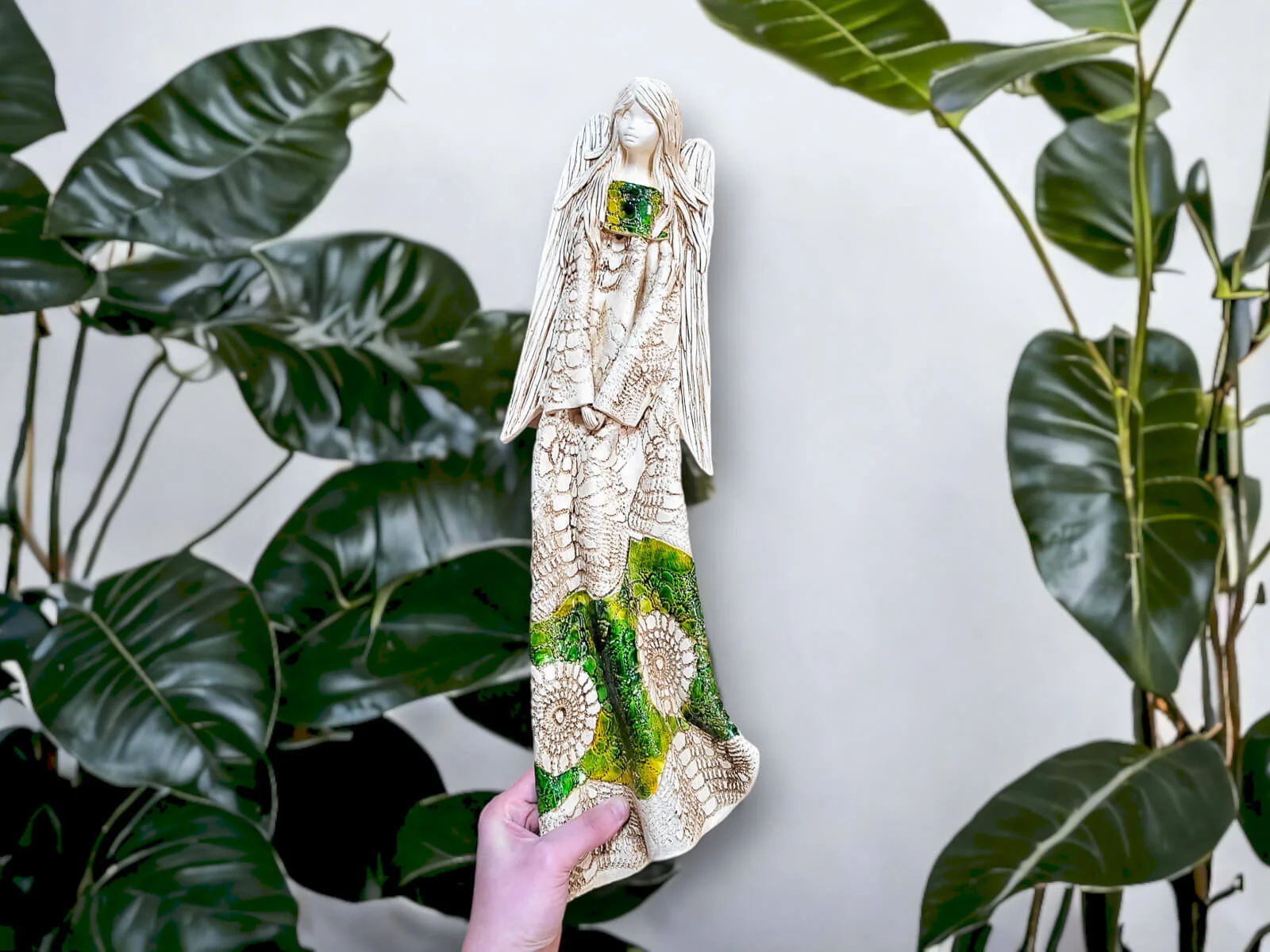 Anioł Genesis - wiszący zielony - 55 x 20 cm figurka dekoracyjna gipsowa