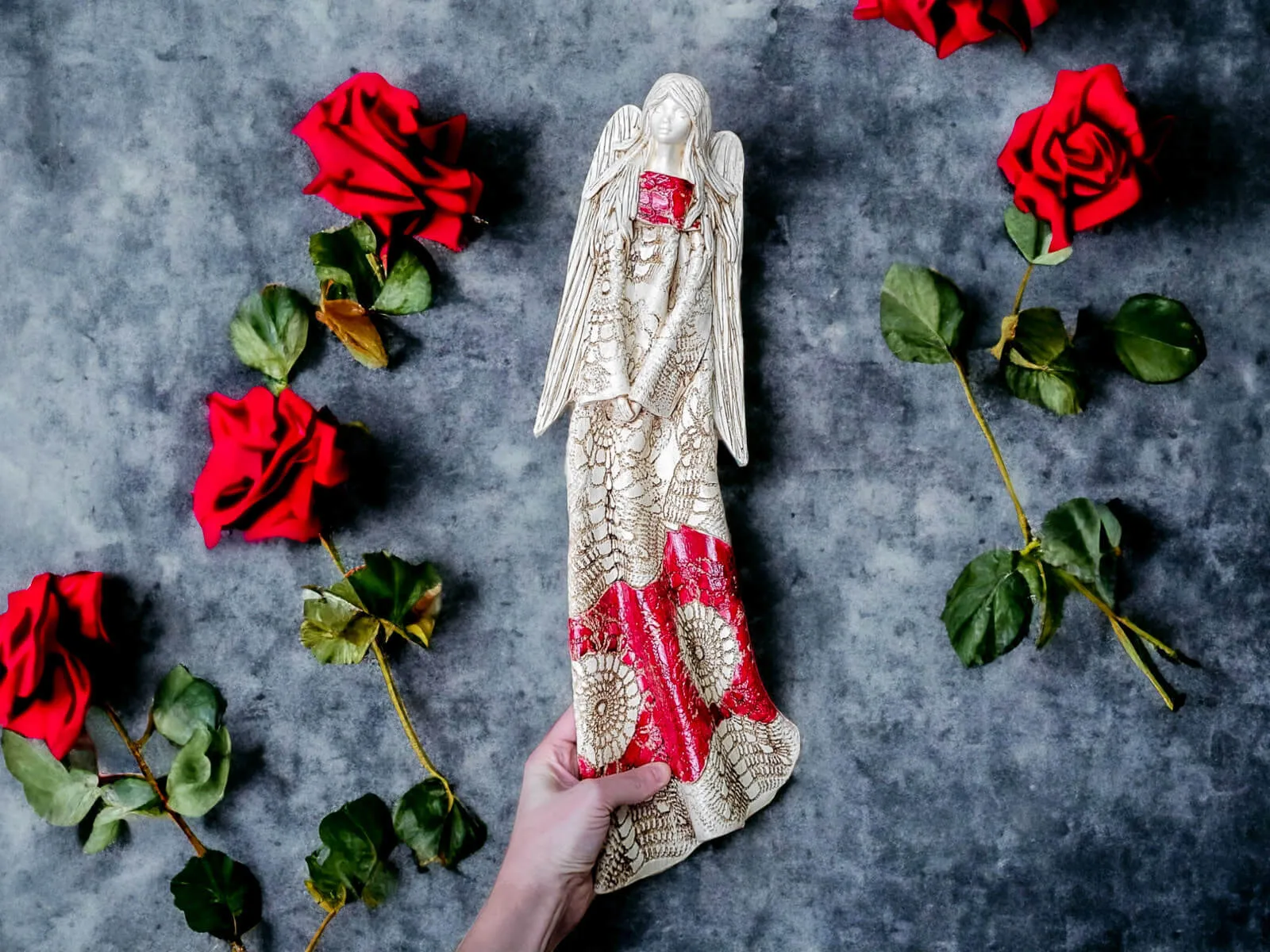 Anioł Clara - czerwony - 40 x 28 cm figurka dekoracyjna gipsowa