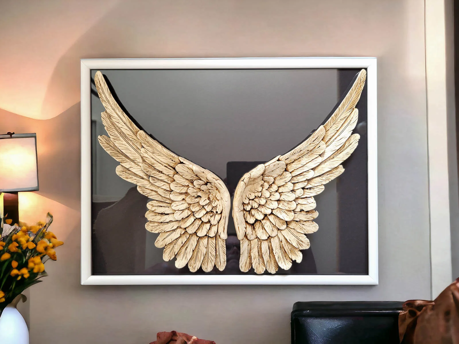 Skrzydła Anioła + ramka - ciemna - wiszące -  30 x 40 cm figurka dekoracyjna gipsowa