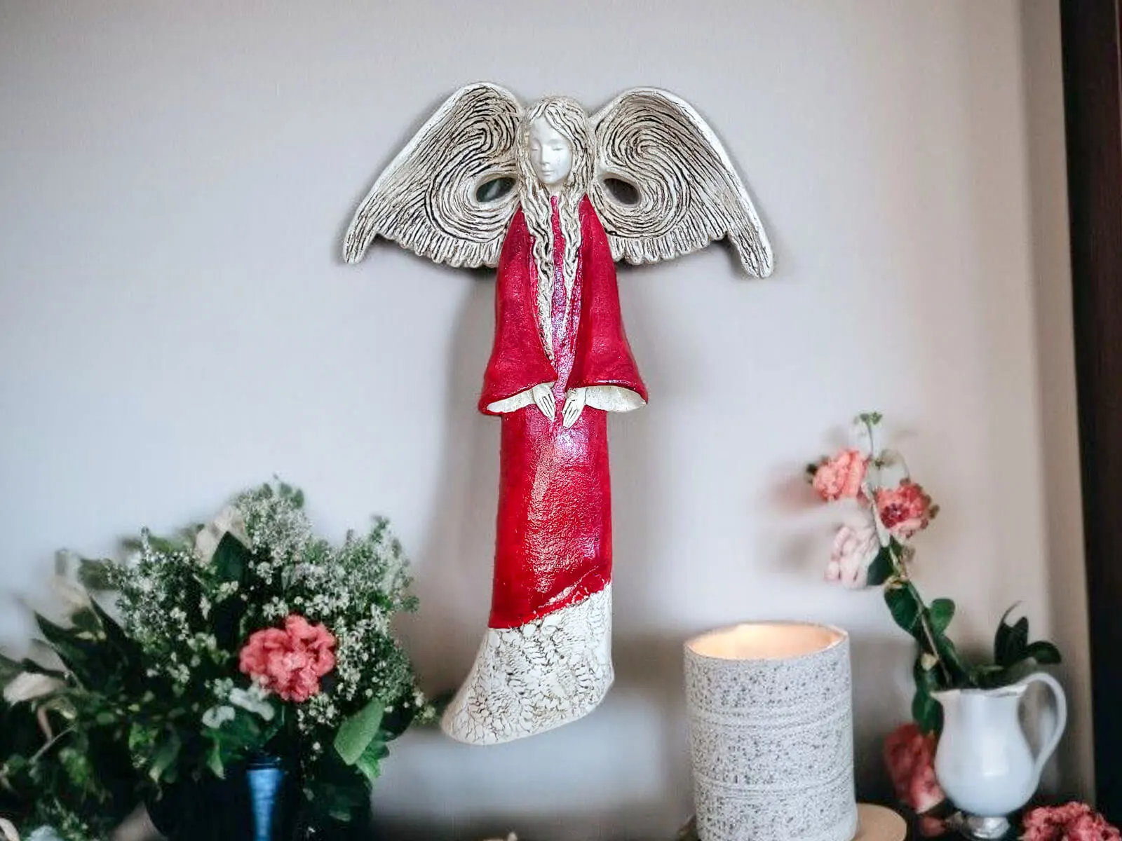 Anioł Clara - czerwony -  40 x 28 cm figurka dekoracyjna gipsowa