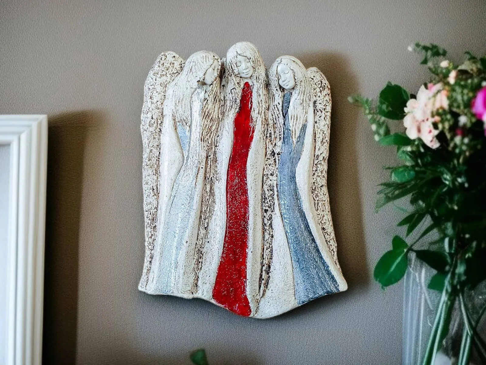 Anioły Wiara Nadzieja Miłość - szary bordo srebro - 28 x 20 cm figurka dekoracyjna gipsowa
