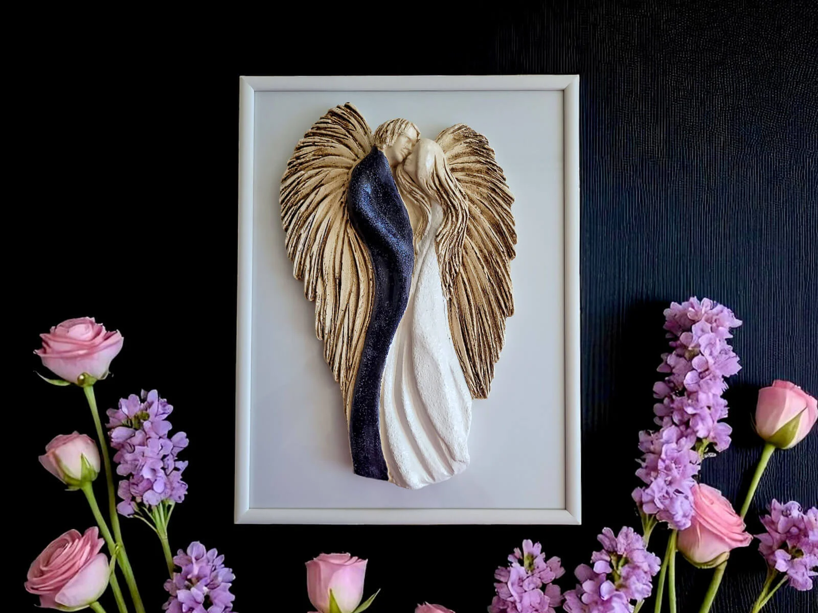 Skrzydła Anioła + ramka - ciemna - wiszące - 30 x 40 cm figurka dekoracyjna gipsowa